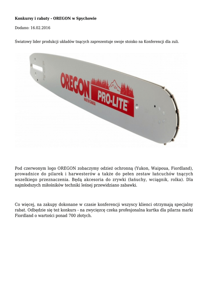 Firmy Leśne - Konkursy i rabaty - OREGON w