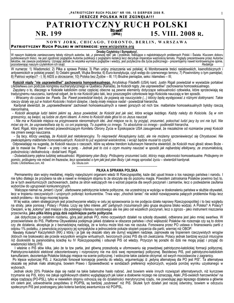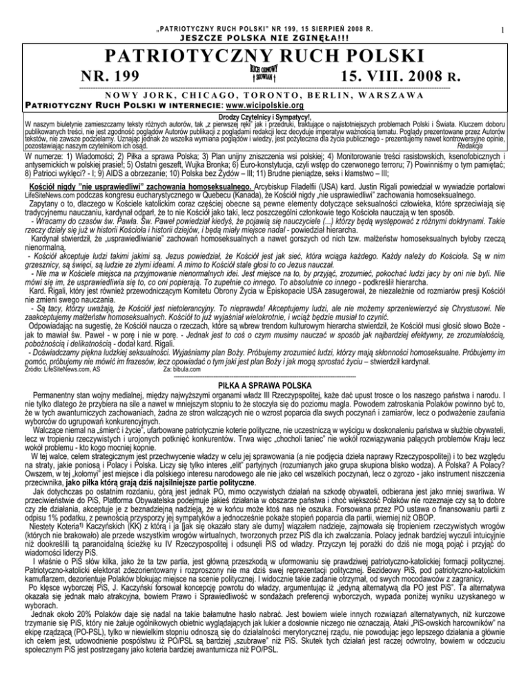 „PATRIOTYCZNY RUCH POLSKI” NR 199, 15 SIERPIEŃ 2008 R.