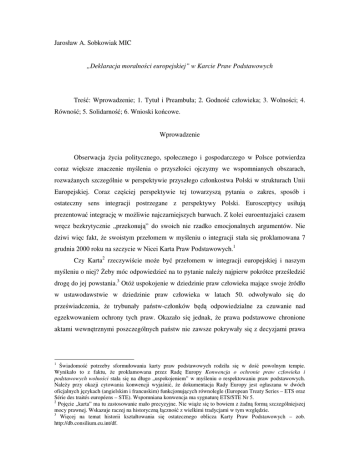 „Deklaracja moralności europejskiej” w Karcie Praw Podstawowych