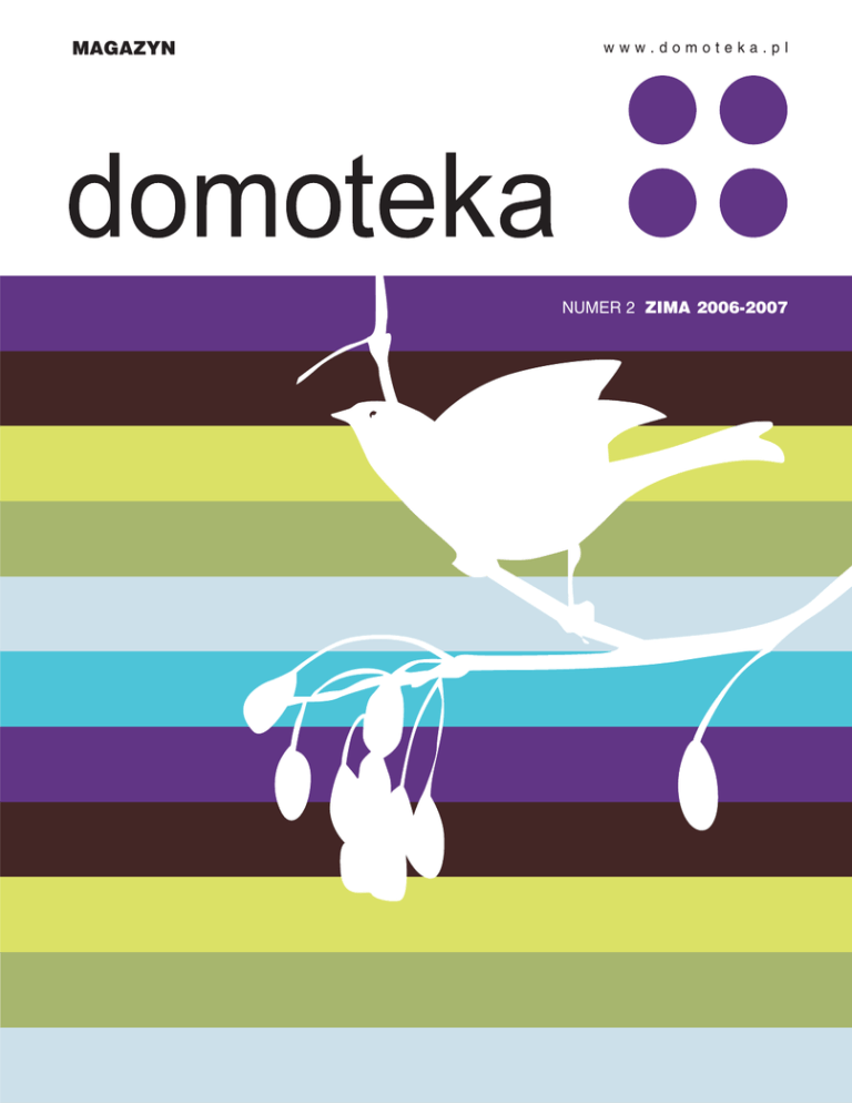 MAGAZYN www.domoteka.pl NUMER 2 ZIMA 2006−2007 F O T O T E K A FOTO: JAROSŁAW JAWORSKI 4 F O T O T E K A Zdjęcie z cyklu: Święta rodzinne 5 Szanowni Państwo, Wielu z Was już odwiedziło Domotekę. Mamy nadzieję, że te wizyty były przyjemnym doświadczeniem, i że nie zawiedliśmy oczekiwań, oferując bogaty wybór mebli, akcesoriów i dekoracji oraz dzieł sztuki: obrazów, rzeźb, unikatowego szkła, fotografii artystycznej. Chcielibyśmy, aby przebywanie w otoczeniu dobrej architektury i odwiedziny w ciekawie zaprojektowanych sklepach, sprawiały naszym gościom radość. Zgromadziliśmy przedmioty z całego świata, z których wiele dostępnych jest tylko u nas, w Domotece. Jesień i zima to pory roku, kiedy więcej czasu spędzamy wspólnie w domu, przy stole, niektórzy przy kominku. W polskiej tradycji dom i rodzina mają miejsce szczególne. Dostrzegamy to zwłaszcza w okresie Świąt Bożego Narodzenia, bo w codziennym zabieganiu nie zawsze potrafimy dać temu wyraz. Pragniemy na równi z Państwem, by dom, ten codzienny i ten świąteczny, był piękny, był spełnieniem Waszych marzeń. Ufamy, że wizyta w Domotece, lektura naszego magazynu i odwiedziny na stronie www.domoteka.pl będą dla Państwa inspiracją. Wierzymy, że Domoteka wraz ze swoimi partnerami-najemcami jest w stanie pomóc w realizacji nawet najśmielszych pomysłów na aranżację domu, jak i na upiększenie świątecznego stołu. By wzbogacić ofertę Domoteki, na naszej stronie internetowej uruchamiamy „Adopcję Wszystkiego do Domu”. Będzie to swoista „tablica ogłoszeń”, na której będziecie mogli Państwo „zawiesić” informacje zarówno o przedmiotach, których poszukujecie, jak i tych, które są Wam niepotrzebne, a mogą przydać się innym. Odpłatny lub nieodpłatny charakter transakcji będzie zależny wyłącznie od Państwa woli. Powodzenia! Krystyna Włodarska i Zespół Domoteki Z I M A 2 0 0 6 − 2 0 0 7 W NUMERZE: 04 FOTOTEKA Jarosław Jaworski: Święta rodzinne 08 LUDZIE Maciej Falkowski: Boże Narodzenie pod kaktusem Niby ta sama religia, niby ta sam żarliwa wiara. A jednak meksykańscy katolicy zupełnie inaczej obchodzą Święta Bożego Narodzenia. 12 WYDARZENIE 08 12 Beata Bochińska: Szklane historie Borowskiego Patrząc na fantazyjne formy Borowskiego to jakby patrzeć w głąb siebie. Spotkanie z tymi szklanymi rzeźbami i rysunkami to obcowanie z artystą światowego formatu, sztuką najwyższych lotów. 15 WYDARZENIE Domoteka otwarta! Wydarzenie biznesowe czy kulturalne? Otwarcie Domoteki było wielkim świętem, ale to tylko preludium do codziennego świętowania udanych zakupów! 18 DOM IDEALNY Imprezy i wydarzenia w Domotece. 20 MIEJSCE 15 20 Magdalena Stopa: Portret rodziny z żyrandolem Pracowitość, miłość i pasja. Tu życie rodzinne toczy się w pracy, a praca w domu. To świat niezwykły, rozświetlony nie tylko blaskiem żyrandoli. 24 ZJAWISKO Jan Witold Suliga: Anioły Patrzą na nas z ołtarzy, świętych obrazków, ze ścian galerii, a ostatnio z reklam. Są ich setki, tysiące. Te ulotne istoty lubią się materializować, a my lubimy je mieć przy sobie. 28 ŚWIATOWE TRENDY 30 WZORNICTWO 24 30 Karolina Grobelska: Przezroczystość koloru Czy biel to kolor? Z czym się kojarzy, co wyraża? Ta barwa fascynuje. Raz przyciąga, raz odpycha – w zależności od kontekstu budzi różne skojarzenia. 34 NOWOŚCI Z DOMOTEKI 37 KATALOG Marki, które znajdziesz zimą w Domotece na warszawskim Targówku. www.domoteka.pl LUDZIE BOŻE NARODZENIE POD KAKTUSEM TEKST: MACIEJ FALKOWSKI W GRUDNIOWEJ POLSCE TRUDNO WYOBRAZIĆ SOBIE, ŻE MOŻNA CZEKAĆ NA WIGILIJNĄ KOLACJĘ WŚRÓD KAKTUSÓW, W PEŁNYM SŁOŃCU, POD PALMĄ. 8 FOTO: GETTY IMAGES/FLASH PRESS MEDIA LUDZIE 9 FOTO: GETTY IMAGES/FLASH PRESS MEDIA LUDZIE Meksyku nie ma szału przedświątecznych zakupów. Na ulicach nie widać świętego Mikołaja, który przytula dzieci i jednocześnie przypomina byśmy nie zapomnieli zakupić dla swoich pociech wspaniałych i drogich prezentów gwiazdkowych. W małych miasteczkach okres przedświąteczny nie różni się niczym od codziennego obrazu, tak jakby to marketingowe sza− leństwo istniało na innej planecie. Prezent pod choinkę nie jest najważniejszy w kraju, w którym wielu nie stać na obfite jedzenie. Trzeba pamiętać, że rodzina meksykańska to zazwyczaj nie dwa plus jeden, lecz dwa plus kilkanaście. Choinka przyprószona śniegiem i udekorowana bombkami, koja− rząca się nam nierozerwalnie z okresem świątecznym, w Meksy− ku jest tradycją obcą, choć w ostatnim czasie zaczyna być coraz bardziej popularna. Mieszkanie w globalnej wiosce sprawia, że zwyczaje innych krajów mieszają się z rdzennymi obrzędami. Szopkę do meksykańskiej kultury wprowadzili franciszkanie. Wystawiana jest w głównym pomieszczeniu domu już po 12 grudnia – święcie Matki Bożej z Gwadelupe. Do Wigilii jest to jedynie scena z figurkami ludzi i zwierząt; dopiero w noc narodzin Chrystusa pojawia się mała postać Jezusa w żłobku. Obok szopki zawsze znajduje się gwiazda betlejemska. Mało kto wie, że ta ro− ślina pochodzi właśnie z Meksyku, a w świecie zachodnim znalazła się za sprawą Joela Roberta Poinsetta, dyplomaty ame− rykańskiego, który nazwał ją swoim imieniem – stąd polska nazwa poinsecja. Świat dał Meksykowi choinkę, a Meksyk odwdzięczył się gwiazdą betlejemską. W 10 Niedługo po wystawieniu szopki – 16 grudnia – przychodzi czas na „posadę”. To jedna z najbardziej lubianych, przedświątecznych tradycji w Meksyku, trwająca przez dziewięć dni, aż do 24 grud− nia. „Posada” przypomina trochę chodzenie po kolędzie. Dawniej, co wieczór ludzie zbierali się w domu innego mieszkańca wsi, aby symbolicznie odgrywać scenę, gdy Maria i Józef przed naro− dzinami Jezusa szukali noclegu w Betlejem. Po dwóch stronach zamkniętych drzwi śpiewali tradycyjne pieśni. Jedni prosili o wpuszczenie do ś