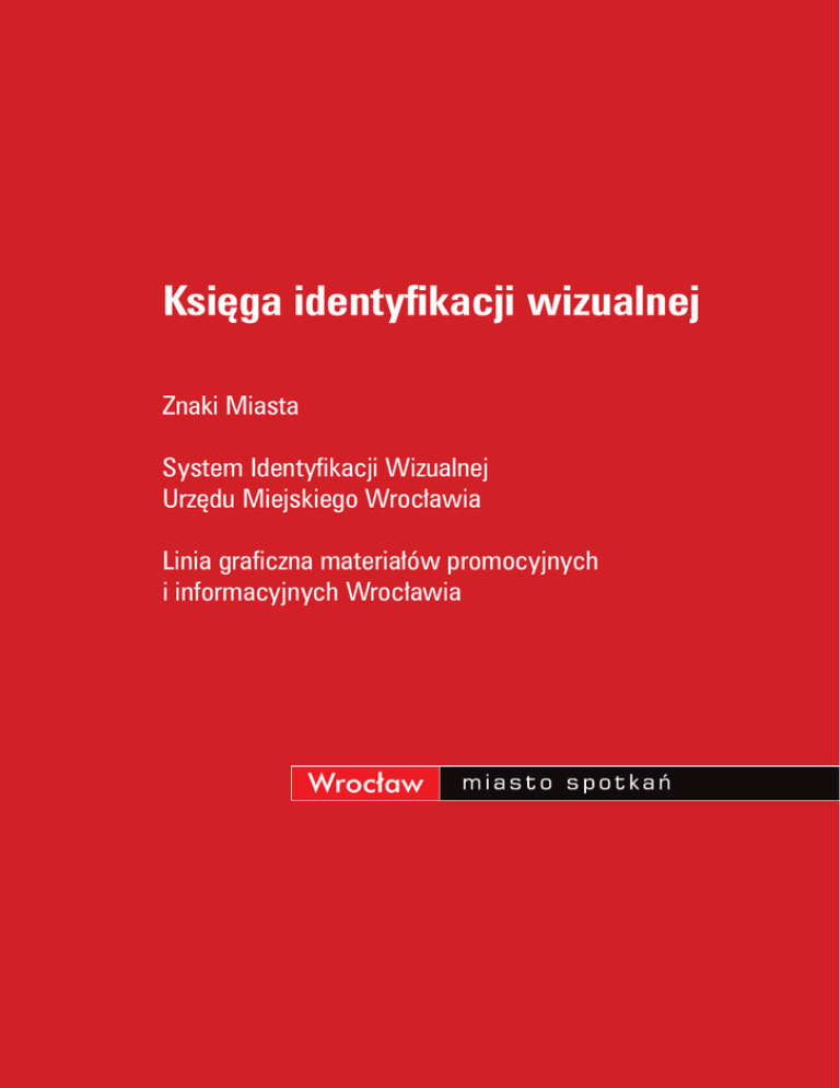 Księga identyfikacji wizualnej Znaki Miasta System Identyfikacji Wizualnej Urzędu Miejskiego Wrocławia Linia graficzna materiałów promocyjnych i informacyjnych Wrocławia 1 Spis treści Wstęp ................................................................................................................................................................. 3 Znaki Miasta ....................................................................................................................................................... 5 System Identyfikacji Wizualnej Urzędu Miejskiego Wrocławia .......................................................................... 13 Zarządzenie Prezydenta Wrocławia w sprawie wprowadzenia Systemu Identyfikacji Wizualnej Urzędu Miejskiego Wrocławia ........................................................................................................................... 23 Linia graficzna materiałów promocyjnych i informacyjnych Wrocławia ............................................................ 73 Poradnik językowy ........................................................................................................................................... 143 2 Wstęp O konieczności dbania o wizerunek nikogo dziś już nie potrzeba przekonywać. Prawda ta nie jest zresztą wcale odkryciem XXI wieku, wystarczy przypomnieć sobie bowiem stare polskie przysłowie „Jak Cię widzą, tak Cię piszą”, by wiedzieć, że nawet najpiękniejsza treść nie obroni się, jeśli będzie podana w niechlujnej formie. Jednak w XXI wieku, w czasach błyskawicznej wymiany informacji i towarów oraz rosnącej konkurencji, firmy i instytucje bez logo i wyraźnej identyfikacji wizualnej nie mają szans zaistnieć na szerszym rynku. Odkryli to już nie tylko producenci dóbr, biorący udział w wyścigu o klienta, ale także takie instytucje jak wyższe uczelnie, starające się pozyskać jak najwięcej studentów, a także regiony i miasta, chcące przyciągnąć jak największą liczbę turystów. O prestiżu firmy i jej profesjonalizmie świadczą: symbol firmy (znak i logotyp firmowy), kolory firmowe, druki firmowe (papier, koperty, dokumenty i inne), identyfikatory pracowników, materiały informacyjne i reklamowe, materiały drukowane dla celów public relations, środki transportu (samochody ciężarowe, osobowe), ubiór pracowników, aranżacja wnętrz siedziby firmy oraz wygląd otoczenia, tablice i tabliczki informacyjne, szyldy i inne nośniki reklamowe, wystrój stoisk targowych, opakowania produktów — czyli System Identyfikacji Wizualnej. Natomiast o marce takiego „produktu” jak miasto świadczy zadowolenie mieszkańców z poziomu życia, polityki społecznej władz miasta, oferty i warunków pracy, możliwości spędzania wolnego czasu, oraz atrakcyjność turystyczna. Księga wizualizacji ma za zadanie wspomagać budowanie i utrzymanie spójnego wizerunku firmy, czyli Urzędu Miejskiego Wrocławia oraz produktu, którym jest Wrocław. Część I niniejszego dokumentu zawiera informacje nt. Systemu Identyfikacji Wizualnej Urzędu Miejskiego Wrocławia (logotypy, wzory papierów firmowych, wizytówek, identyfikatorów, tablic informacyjnych itd.). Część II natomiast przedstawia linię graficzną materiałów promocyjnych i informacyjnych Wrocławia, podzieloną na trzy działy (polityka społeczna miasta, praca i wiedza, kultura czasu wolnego), obejmujące wszelkie obszary życia nowoczesnej metropolii. Część III to poradnik językowy zawierający zwięzłe wskazówki pomocne przy redagowaniu pism, notatek, artykułów i innych tekstów, listę najczęściej popełnianych błędów opatrzoną krótkimi komentarzami, formy grzecznościowe oraz wskazówki edytorskie. 3 4 Znaki Miasta Herb, flaga, logo 5 Znaki Miasta — herb Znakami Miasta są herb, barwy i logo. Wzory znaków Miasta określa Statut Wrocławia z dnia 17 maja 1996 roku. Znaki Miasta są prawnie chronione. Herbem Wrocławia od roku 1990 jest tarcza podzielona w krzyż na cztery pola (opis zgodny z zasadami heraldyki): 1. w polu górnym po stronie prawej (heraldycznie) lew wspięty w lewo z koroną na głowie, pyskiem otwartym z podniesionym i rozwidlonym ogonem. Lew biały z konturem czarnym, koroną żółtą z konturem czarnym i tłem czerwonym, 2. w polu lewym orzeł o skrzydłach symetrycznie rozłożonych, zwrócony głową w prawo z wyraźnie zaznaczoną półksiężycową przepaską przez tułów i skrzydła, z krzyżem równoramiennym pośrodku. Orzeł czarny, półksiężyc i krzyż białe, tło żółte, 3. w polu dolnym prawym duża litera „W” ze ściętymi szeryfami — czarna na żółtym tle, 4. w polu dolnym lewym głowa św. Jana Ewangelisty skierowana na wprost, o twarzy młodzieńca z lokami jakby kobiecymi, w nimbie dookoła głowy, osadzona na odwróconej koronie. Głowa biała z konturem czarnym, nimb i korona żółte z konturem czarnym, tło pola czerwone, 5. pośrodku czteropolowej tarczy głowa św. Jana Chrzciciela skierowana skośnie w prawo, wewnątrz okrągłej misy. Głowa biała z włosami i brodą czarnymi, misa biała z podwójnym czarnym konturem. Rozpowszechnianie nazwy Miasta i herbu wymaga zgody Prezydenta. 6 Znaki Miasta — barwy, flaga Flagą Miasta jest prostokątny płat tkaniny w kolorach czerwonym i żółtym. Stosunek szerokości flagi do jej długości wynosi 5:8. Zezwala się na umieszczenie herbu Miasta na tle flagi. 7 Znaki Miasta — logo kolorystyka CMYK PANTONE żółty C0 M 10 Y 100 K0 Yellow 109 C czerwony C0 M 100 Y 100 K0 Warm red C niebieski C 91 M 43 Y0 K0 Blue 285 C czarny C0 M0 Y0 K 100 Black W 1996 roku został rozstrzygnięty konkurs na logo Wrocławia. Autorem zwycięskiego projektu jest Paweł Pawlak. Instytucje i projekty dofinansowane z budżetu Gminy Wrocław mają obowiązek umieszczenia logo na publikacjach, billboardach itd. Uwaga! Najczęściej popełniany błąd w stosowaniu logo Wrocławia: brak napisu WROC