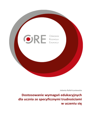 Jolanta Rafał-Łuniewska Dostosowanie wymagań edukacyjnych dla ucznia ze specyficznymi trudnościami w uczeniu się Jolanta Rafał-Łuniewska • Dostosowanie wymagań edukacyjnych dla ucznia ze specyficznymi trudnościami w uczeniu się • - ( I. Podstawa prawna Rozporządzenie Ministra Edukacji Narodowej z dnia 30 kwietnia 2007r. z późn. zm. ( Dz. U. nr 83, poz.562; Dz. U. nr 228, poz.1491; Dz. U z 2013r. poz. 520) w sprawie warunków i sposobu oceniania, klasyfikowania i promowania uczniów i słuchaczy oraz przeprowadzania sprawdzianów i egzaminów w szkołach publicznych, określa w § 1a jak w rozporządzeniu rozumieć specyficzne trudności w uczeniu się, natomiast w § 6.1 i § 6.1a, pkt 1-4 nauczyciele są zobowiązani do indywidualizacji i dostosowania wymagań edukacyjnych. „ §6.1a Nauczyciel jest obowiązany dostosować wymagania edukacyjne, o których mowa w § 4 ust.1 pkt 1, do indywidualnych potrzeb rozwojowych i edukacyjnych oraz możliwości psychofizycznych ucznia: 1) Posiadającego orzeczenie o potrzebie kształcenia specjalnego (…) 2) Posiadającego orzeczenie o potrzebie indywidualnego nauczania (…) 3) Posiadającego opinię poradni p-p (…) 4) Nieposiadającego orzeczenia lub opinii wymienionych w pkt 1-3,który objęty jest pomocą psychologiczno-pedagogiczną w szkole- na podstawie rozpoznania indywidualnych potrzeb rozwojowych i edukacyjnych oraz indywidualnych możliwości psychofizycznych ucznia dokonanego przez nauczycieli i specjalistów, o którym mowa w przepisach w sprawie zasad udzielania i organizacji pomocy psychologiczno-pedagogicznej w publicznych przedszkolach, szkołach i placówkach (Dz. U. z 2013 r. poz.532)” § 4 ust.1 pkt 1 Rozporządzenia Ministra Edukacji z dnia 30 kwietnia 2007 r. z późn. zmianami w sprawie warunków i sposobu oceniania, klasyfikowania i promowania uczniów i słuchaczy oraz przeprowadzania sprawdzianów i egzaminów w szkołach publicznych: § 4. 1. Nauczyciele na początku każdego roku szkolnego informują uczniów oraz ich rodziców (prawnych opiekunów) o: 1) wymaganiach edukacyjnych niezbędnych do uzyskania poszczególnych śródrocznych i rocznych (semestralnych) ocen klasyfikacyjnych z obowiązkowych i dodatkowych zajęć edukacyjnych, wynikających z realizowanego przez siebie programu nauczania; 2 Jolanta Rafał-Łuniewska • Dostosowanie wymagań edukacyjnych dla ucznia ze specyficznymi trudnościami w uczeniu się • II. Odniesienie indywidualizacji nauczania do praktyki szkolnej W każdej klasie szkolnej mogą znajdować się uczniowie, którzy będą doświadczali różnych okresowych (przejściowych) kłopotów związanych z uczeniem się czytania i pisania. Mogą to być trudności związane m.in. z absencją w szkole spowodowaną np. nieobecnością (wyjazd za granicę) lub problemami występującymi w środowisku rodzinnym (np. brak wsparcia ze strony rodziców, małe zainteresowanie sprawami edukacyjnymi swoich dzieci, nieczytanie im książek, niski status społeczno-ekonomiczny rodziny). Trudności te mogą być także wynikiem niedyspozycji ucznia spowodowanej chorobą (przewlekłą lub występującą okresowo, np. alergią, przeziębieniem), która to powoduje ogólnie gorsze samopoczucie ucznia, obniżone możliwości percepcyjne, a w związku z tym trudności z koncentracją uwagi, zapamiętywaniem i wykonywaniem poleceń nauczyciela. Przejściowe trudności z uczeniem się pisania i czytania wymagają od nauczyciela zupełnie innych oddziaływań niż trudności o charakterze stałym. Dlatego zanim nauczyciel zaplanuje i podejmie stosowne działania zmierzające do ich przezwyciężenia, powinien przeprowadzić dokładną analizę problemu. Analiza ta może polegać m.in. na ustaleniu przyczyn występowania określonych trudności (czy są one związane z ogólnym funkcjonowaniem ucznia w szkole, występowaniem chorób układu nerwowego, czy dotyczą tzw. specyficznych trudności w uczeniu się, występujących u uczniów o prawidłowej inteligencji, czyli np. uczniów z tzw. ryzyka dysleksji). W przypadku dostrzeżenia przez nauczyciela ucznia, u którego występują trudności związane z uczeniem się czytania i pisania, powinien on podjąć następujące kroki: przeprowadzić wywiad z rodzicami dotyczący ogólnego funkcjonowania ucznia (występowania u niego problemów, zaburzeń i chorób); skonsultować się ze specjalistami (z jakiego wsparcia dany uczeń dotychczas korzystał, jakie informacje w szkole są dostępne na temat danego ucznia, np. od pielęgniarki szkolnej, psychologa czy pedagoga), poprosić rodziców o dostarczenie karty obserwacyjnej z przedszkola; przeprowadzić zaplanowaną obserwację potrzeb i możliwości ucznia1, która umożliwi precyzyjne zaplanowanie zindywidualizowanego wsparcia 1 M. Bogdanowicz Ryzyko dysleksji. Problem i diagnozowanie. Wyd. Harmonia Gdańsk 2008 3 Jolanta Rafał-Łuniewska • Dostosowanie wymagań edukacyjnych dla ucznia ze specyficznymi trudnościami w uczeniu się • Specyficzne trwałe trudności w nauce czytania i pisania określa się mianem dysleksji rozwojowej. Mogą one dotyczyć zaburzeń różnych obszarów funkcjonowania ucznia w szkole. W ramach omawianych trudności wyróżnia się trzy następujące formy: dysleksję – trudności w nauce czytania i pisania; dysgrafię – trudności z poprawnym poziomem graficznym pisma. dysortografię – trudności z opanowaniem i właściwym stosowaniem reguł gramatycznych i ortograficznych; dyskalkulię- trudności w liczeniu Specyficzne trudności w uczeniu się pisania i czytania należy odróżnić od występujących trudności związanych m.in. z zaniedbaniami edukacyjnymi i środowiskowymi oraz od trudności będących konsekwencją zaburzeń i chorób układu nerwowego czy innych współwystępujących dysfunkcji u ucznia (tzw. niespecyficznych trudności). 2. Przykładowe opisy zachowania dziecka w klasie Jakie zachowania ucznia mogą zwrócić uwagę nauczyciela