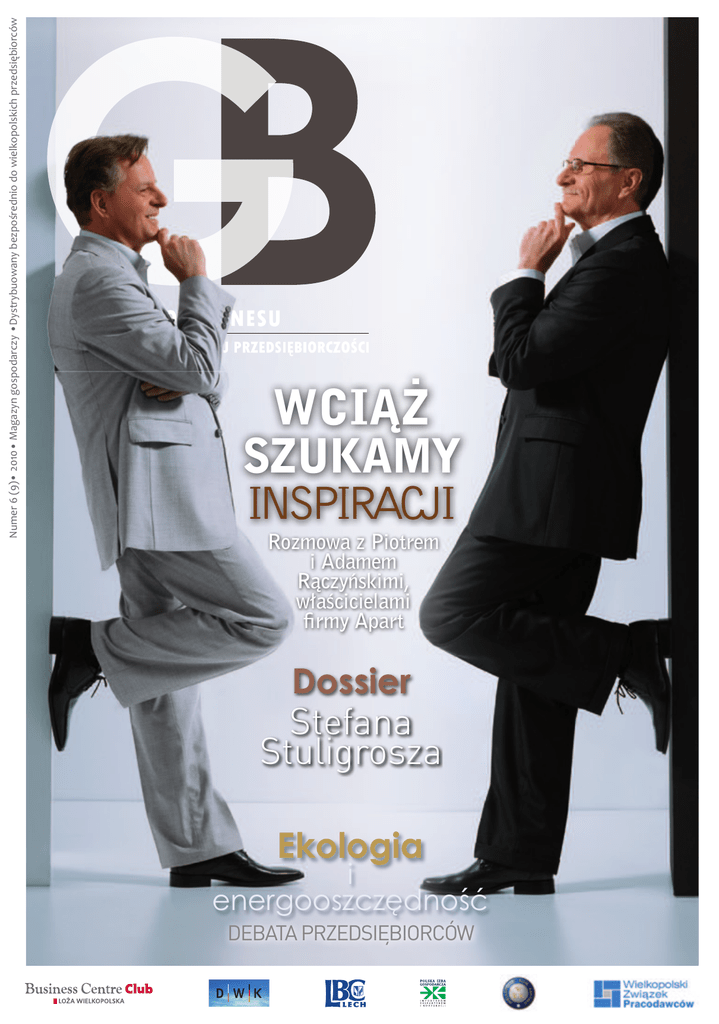 Numer 6 (9)• 2010• Magazyn gospodarczy •Dystrybuowany bezpośrednio do wielkopolskich przedsiębiorców WCIĄŻ SZUKAMY INSPIRACJI Rozmowa z Piotrem i Adamem Rączyńskimi, właścicielami firmy Apart Dossier Stefana Stuligrosza Ekologia i energooszczędność DEBATA PRZEDSIĘBIORCÓW AKTUALNOŚCI 6 Co nas czeka w 2011 roku? 6 Główny Inspektor Pracy w Poznaniu 7 Wielkopolanie z medalami 8 Jubileusz PIGIEiK 9 O lotnisku na Forum 10 Kandydaci o gospodarce 9 ROZMOWY GŁOSU 12 Wciąż szukamy inspiracji Rozmawiamy z Piotrem I Adamem Rączyńskimi, założycielami i właścicielami firmy Apart. ORGANIZACJE BIZNESOWE: DEBATA 12 17 Ekologia i energooszczędność FELIETONY 24 Kto naprawdę sprzyja biznesowi? „Okiem z Brukseli” Filipa Kaczmarka 26 Co może zarząd? Porady prawne Jerzego Krotoskiego DOSSIER 34 25 Pasja kształtuje człowieka Stefan Stuligrosz Rada redakcyjna: Anna Lisewska Bussines Centre Club – Loża Wielkopolska Iwona Marszałek Polsko-Niemieckie Koło Gospodarcze (DWK) Grzegorz Wichniarek Lech Business Club Kalina Kiser-Beyme Polska Izba Gospodarcza Importerów, Eksporterów i Kooperacji Karina Plejer Wielkopolski Klub Kapitału Małgorzata Animucka Wielkopolski Związek Pracodawców Redakcja i realizacja: Skivak Custom Publishing www.skivak.pl Dyrektor wydawniczy: Damian Nowak [email protected] C: 0, M: 75, Y: 100, K: 0 C: 0, M: 0, Y: 0, K: 100 Redakcja „Głosu Biznesu” nie zwraca materiałów niezamówionych oraz zastrzega sobie prawo do skrótów i redakcyjnego opracowania tekstów przyjętych do druku. Za treść reklam i ogłoszeń redakcja nie odpowiada. 4 GŁOS BIZNESU │ Nr 6│2010 Redaktor prowadzący: Krzysztof Piech [email protected] Skład: Paweł Chlebowski [email protected] Fotografie: Skivak Custom Publishing, Okładka: Archiwum Apart Adres redakcji: Głos Biznesu ul. Głuchowska 1, 60-101 Poznań tel. + 48 061 625 61 15 fax + 48 061 625 61 21 www.glos-biznesu.pl Dołącz do nas na Facebook'u Druk i oprawa: Drukarnia Classic www.classic.net.pl SPIS TREŚCI PODRÓŻE 28 Voucher, czyli dobry pomysł na prezent 36 38 ZDROWIE 29 Zdrowie na wyciągnięcie ręki GOSPODARKA 30 Inwestycje kontra środowisko TECHNOLOGIE 34 Nie ma się czego bać WIELKOPOLSKIE GMINY 36 Tarnowo pnie się w górę LIFESTYLE 38 Tradycja z Londynu 39 Operacja Dress Code 40 Sztuka palenia cygar KALENDARIUM 42 Wydarzenia biznesowe i kulturalne 40 KALENDARIUM Etos i ekologia 42 Wydarzenia biznesowe i kulturalne Ani się obejrzeliśmy, a nadszedł grudzień – czas inwentur, podsumowań, wyciągania wniosków, snucia planów na przyszłość, wdrażania nowych pomysłów. Zarówno w redakcji „Głosu Biznesu”, jak i we wszystkich wielkopolskich przedsiębiorstwach. Mamy nadzieję, że nadchodzący Nowy Rok będzie dla nas wszystkich udany, czego – obok spokojnych i radosnych świąt Bożego Narodzenia – serdecznie naszym Czytelnikom życzymy! W tym numerze polecamy Państwa uwadze zwłaszcza wywiad z Piotrem i Adamem Rączyńskimi. Imponuje nam wielkopolski etos pracy, a założona przez nich firma – Apart – to świetna ilustracja tego właśnie etosu. W naszym cyklicznym przeglądzie podpoznańskich gmin przyszedł czas na Tarnowo Podgórne, czyli inny wzór wielkopolskiej gospodarności. Raport gospodarczy poświęcony jest proceduralnym problemom, jakie może napotkać inwestor, czyli tzw. decyzjom środowiskowym, natomiast temat, który zaproponowaliśmy przedsiębiorcom w naszej tradycyjnej debacie, to „Ekologia i energooszczędność”, co – jak się okazuje – również ściśle związane jest z (wielkopolską) gospodarnością. Zespół redakcyjny „Głosu Biznesu” Nr 6│2010 │ GŁOS BIZNESU 5 AKTUALNOŚCI Co nas czeka w 2011 roku? Październikowe spotkanie Wielkopolskiego Klubu Kapitału odbyło się na zaproszenie Jarosława Młynarczyka, Dyrektora Centrum Bankowości Biznesowej BZ WBK SA w Poznaniu, członka Klubu. W stylowej Sali Kominkowej w siedzibie Banku przy Placu Wolności, przybyli na spotkanie goście zapoznali się z bieżącymi informacjami na temat działalności BZ WBK i wysłuchali interesującego wystąpienia Piotra Bielskiego – Starszego Ekonomisty Banku – który dokonał analizy obecnej sytuacji makroekonomicznej w Polsce i przedstawił prognozy na najbliższe lata. Według BZ WBK przed Polską jest rok, który będzie się charakteryzował umiarkowanym rozwojem i poprawą makroekonomiczną. Jednak, jak podkreślił Ekonomista Banku, wystąpi bardzo duże zróżnicowanie tego ożywienia. Zaprezentowane dane zapoczątkowały ciekawą dyskusję, którą kontynuowano w drugiej części spotkania, przy smacznych potrawach i napojach, którymi ugościł wszystkich Bank Zachodni WBK. Główny Inspektor Pracy w Poznaniu Główny Inspektor Pracy, Tadeusz Jan Zając, oraz Krzysztof Fiklewicz, Okręgowy Inspektor Pracy w Poznaniu, spotkali się z zarządem i członkami Wielkopolskiego Związku Pracodawców. T adeusz Zając odwiedził Poznań 21 września, a podejmowali go Jacek Silski (prezes WZP) oraz Zbigniew Stochalski i Krzysztof Kłosowicz (wiceprezesi Związku). W spotkaniu uczestniczyli także pracodawcy reprezentujący największe zakłady pracy Poznania. W trakcie spotkania ustalono, iż strony – inspekcja pracy i WZP – podejmą inicjatywę poszukiwania formy współpracy, która będzie skutkować próbą zmiany prawa pracy w zakresie dzisiaj obowiązujących kłopotliwych, kosztownych i często nielogicznych przepisów. Minister Zając zadeklarował, że po przygotowaniu tematów w Poznaniu jest gotów osobiście się zaangażować, przyjechać na kolejne spotkanie i pilotować dalsze rozwiązywanie przedstawionych problemów. Przygotowanie spraw w Poznaniu będzie się odbywać poprzez kontakt przedstawicieli WZP z Inspektorem Okręgowym Krzysztofem Fiklewiczem i polegać na dokładnym opisaniu zastrzeżeń Pracodawców do konkretnych przepisów. Po zakończeniu spotkania wszyscy jego uczestnicy wzięli udział w zw
