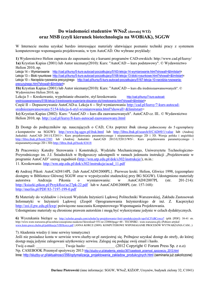 z komputerów na SGGW): http://www.bg.sggw.pl/ibuk.html lub http://libra.ibuk.pl/search/0/CAD#0/1/value lub (Andrzej