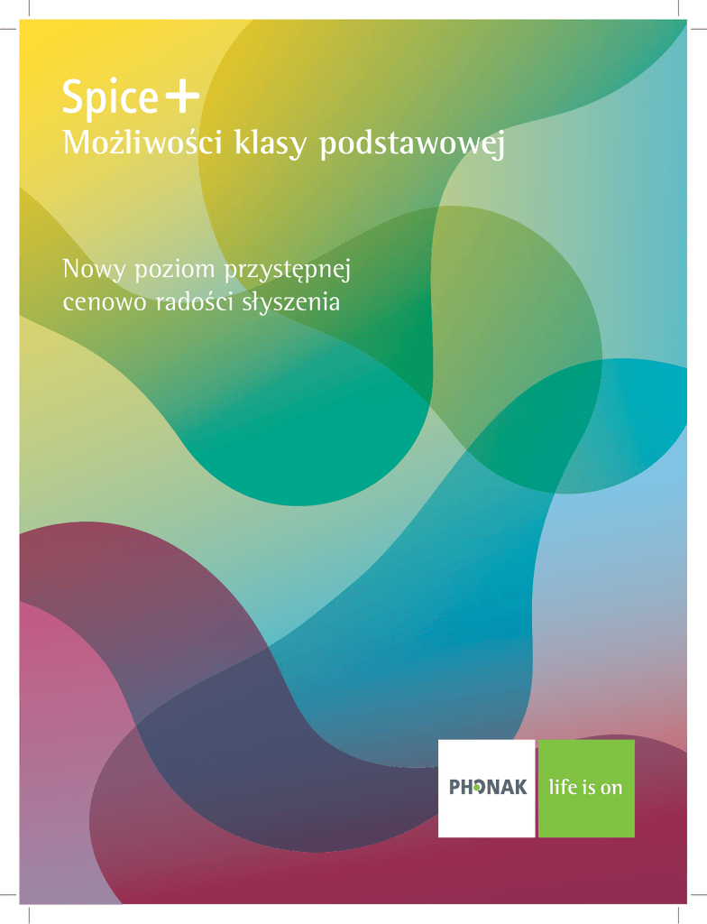 Możliwości klasy podstawowej Nowy poziom przystępnej cenowo radości słyszenia Nowe podstawy radości słyszenia Do niedawna korzyści płynące ze stosowania rozwiązań generacji Phonak Spice+ były osiągalne tylko w klasie pierwszej, biznes i ekonomicznej. Zalety generacji Spice+ można obecnie zaproponować większej liczbie pacjentów. Mamy dobrą wiadomość: technologia Spice+ jest obecnie dostępna w podstawowej klasie. W niej właśnie technologia Spice+ jest wyjątkowo przystępna cenowo. Można teraz wyjść naprzeciw oczekiwaniom pacjentów przykładających dużą wagę do ceny, nie rezygnując z wyznaczanego sobie wysokiego standardu usługi. Udowodniono, że technologia Spice+ sprzyja spontanicznej akceptacji aparatów przez użytkowników, zapewniając im znakomitą jakość dźwięku i długotrwałą radość słyszenia, specjalistom zaś znacznie ułatwia dopasowanie i strojenie aparatów. Poziomy możliwości/ klasy aparatów Aparaty uniwersalne Aparaty ze słuchawką kanałową Produkty z klasy podstawowej dają pacjentom ogromną radość słyszenia, mają bowiem znakomite funkcje firmy Phonak zwiększające słyszalność, zrozumiałość mowy i komfort noszenia. A najlepsze jest to, że produkty z klasy podstawowej są dostępne w wielu stylach i na wielu poziomach wzmocnienia. To oznacza, że można łatwo znaleźć odpowiednie rozwiązanie dla każdego pacjenta bez względu na stopień ubytku słuchu i styl życia. Aparaty dużej mocy Aparaty dla dzieci Naída S IX Naída S IX Audéo S IX Biznes Phonak Solana Audéo S V Ekonomiczna Phonak Cassia Audéo S III Podstawowa Phonak Dalia Audéo S I Naída S III Naída S I Naída S V Nios S V Naída S III Nios S III Naída S I Milo FM Budżetowa* Naída S V * Platforma CORE AccessLine Phonak Ambra Phonak CROS Pierwsza Witamy w ofercie produktów klasy podstawowej Systemy słuchowe klasy podstawowej wykorzystują możliwości platformy Spice+. Phonak Dalia, Audéo S SMART I oraz Naída S I razem tworzą najbogatszą paletę różnorodnych stylów umożliwiającą dobranie rozwiązania do potrzeb i preferencji każdego pacjenta. Phonak Dalia Możliwości i wszechstronność w klasie podstawowej Seria Phonak Dalia, zawierająca aparaty wewnątrzuszne i zauszne o różnorodnej stylistyce, stanowi trzon oferty produktów klasy podstawowej. Do serii tej należy też wodoodporny aparat M H2O w najnowszej obudowie typu mikro marki Phonak. Phonak Dalia to seria zapewniająca najwięcej możliwości wyboru pacjentom przykładającym dużą wagę do ceny. Audéo S SMART I Styl i uniwersalność w klasie podstawowej Audéo S SMART I to znakomita stylistyka i uniwersalność technologii kanałowej słuchawki wprowadzone do klasy podstawowej, dzięki czemu wspaniała stylistyka i możliwości platformy Spice+ są teraz dostępne w wyjątkowo przystępnej cenie. Naída S I Moc w klasie podstawowej Wprowadzenie aparatu słuchowego Naída zrewolucjonizowało segment aparatów słuchowych dużej mocy. Obecnie, dzięki technologii Spice+, aparat Naída S I otwiera nowy poziom radości słyszenia przed pacjentami o największych wymaganiach związanych ze słyszalnością i zrozumiałością. Więcej informacji na temat generacji Phonak Spice+ znajduje się na stronie internetowej: www.phonakpro.com/klasa-podstawowa Podstawy radości słyszenia Największym problemem osób z ubytkiem słuchu są trudności w usłyszeniu dźwięków o wysokiej częstotliwości i rozumienie w cichym, a także w głośnym otoczeniu. Aby zaspokoić te podstawowe potrzeby, stworzyliśmy zestaw unikalnych funkcji generacji Phonak Spice+, zwiększających słyszalność, zrozumiałość mowy i komfort słuchania, co zostało potwierdzone naukowo. Funkcje te bazują na najlepszym w branży chipsecie Spice+ i ustanawiają nowe standardy wydajności przy ednoczesnym zachowaniu konkurencyjnych poziomów cenowych. Dodaje rozumienie do słyszenia SoundRecover SoundRecover całkowicie zmienił poglądy na wzmocnienie dźwięków o wysokiej częstotliwości w przypadku wszystkich stopni ubytku słuchu. Wkraczając tam, gdzie kończy się możliwość rozszerzania pasma, posługuje się on nieliniową kompresją częstotliwości zapewniającą słyszalność dźwięków o wysokiej częstotliwości. SoundRecover poszerza szerokość pasma percepcji, zwiększając zrozumiałość przy jednoczesnym zachowaniu naturalnej jakości dźwięku. Dzięki niemu użytkownicy mogą cieszyć się pełnym spektrum dźwięków. Ale nie wierz nam na słowo. SoundRecover to układ, który doczekał się największej liczby badań i publikacji w branży. Wyniki badań przeprowadzonych na całym świecie są dostępne w ponad 20 publikacjach i recenzjach oraz ogromnej liczbie prezentacji na różnych konferencjach. Odwiedź stronę www.phonak.com/soundrecover-pl. Niepowtarzalny, efektywny układ SoundRecover jest obecnie dostępny w każdym aparacie słuchowym generacji Phonak Spice+, także w klasie podstawowej. UltraZoom Essential Technologia kierunkowa już od wielu lat cechuje innowacyjne produkty firmy Phonak. Jest to niewątpliwie najlepszy w swojej klasie obecnie dostępny system kierunkowy. W celu zapewnienia niezmiennych, długotrwałych korzyści systemu UltraZoom mikrofony są starannie dopasowane i dynamicznie kalibrowane. UltraZoom Essential znacznie poprawia zrozumiałość mowy przy hałasie w tle. Tworzenie niezrównanego komfortu słuchania WhistleBlock Niezwykle skuteczny algorytm zastosowany w technologii WhistleBlock posługuje się modułem znakowania i identyfikacji, który doskonale odróżnia sprzężenie od dźwięków tonalnych podobnych do sprzężenia. Oznacza to stosowanie fazowego tłumienia sprzężenia wtedy, kiedy jest to konieczne bez jakichkolwiek niepożądanych artefaktów. Dodatkowy, stabilny poziom wzmocnienia zapewniony przez WhistleBlock jest szczególnie istotny w przypadku dopasowania otwartego i aparatów dużej mocy. W efekcie jakość dźwi