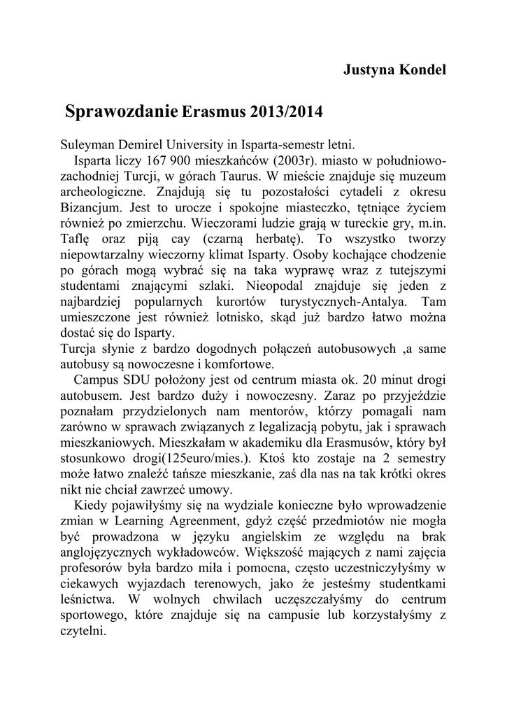 Justyna Kondel Sprawozdanie Erasmus 2013/2014