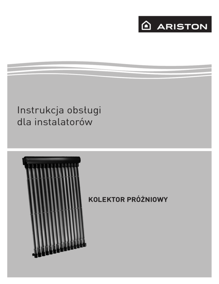 Instrukcja obsługi dla instalatorów Kolektor próżniowy Kolektor próżniowy VT Instalacja Instalacja systemu solarnego musi zostać wykonana w następującej kolejności: Planowanie instalacji Wymiarowanie pola wyrównawczego. kolektorów, zasobnika ciepła, orurowania Określenie lokalizacji montażu i rozkładu orurowania. Montaż instalacji solarnej zgodnie z instrukcją Instalacja zasobnika CWU, grupy pompowej i zbiornika wyrównawczego . Montaż rur do miejsca montażu kolektorów Montaż regulatora solarnego. Montaż kolektorów Montaż mocowania kolektora do konstrukcji budynku Przygotowanie mocowania rur i kolektora hydraulicznego Montaż mocowania rur i kolektora hydraulicznego Montaż rur kolektora Podłączenie kolektora Próba ciśnienia Uruchomienie Uruchomienie całego układu solarnego Przekazanie instrukcji i dokumentacji technicznej użytkownikowi i zbiornika Dyrektywy i Standardy Normy Demontaż i utylizacja Aby zagwarantować bezpieczne i wydajne funkcjonowanie przy niskim zużyciu energii, przestrzegać należy wszystkich standardów, regulacji i obowiązujących dyrektyw (wytycznych). W szczególności: Wszystkie materiały kolektora muszą zostać zutylizowane przy zastosowaniu obowiązujących standardów. Ewentualny demontaż, transport oraz koszty utylizacji ponosi ostateczny użytkownik. - EN 12975 -1 i 2 Zalecenia dotyczące warunków gwarancji. - EN 12976 – 1 i 2 - ENV1991 – 2 – 3 – 4 • Gwarancja traci ważność w następujących przypadkach: - DIN EN 516 • niewłaściwego użytkowania - DIN EN 517 – • złego montażu lub nieprawidłowego Transport / magazynowanie uruchomienia • Transport i magazynowanie rur ko- • uruchomienia instalacji bez napeł- lektora, wyłącznie zgodnie ze wskazaniem na opakowaniu (góra/dół). nienia instalacji bądź bez napełnienia zasobnika CWU • Pozostawienie kolektorów w opa- • przetrzymywanie opróżnionej insta- kowaniu do czasu definitywnego określenia lokalizacji montażu, żeby ochronić je przed zniszczeniem. • Nie dotykać miedzianych końcówek rur kolektora w czasie ekspozycji na słońcu – ryzyko poparzenia. Wyciągać z kartonu tuż przed montażem. • Rury próżniowe należy zawsze zasłonić po montażu a przed pierwszym uruchomieniem instalacji. Uziemienie i ochrona przed wyładowaniami. lacji przez więcej niż kilka dni • używanie urządzenia przy zbyt dużym ciśnieniu • nieużywanie zamrożeniowych płynów przeciw Wymagania do warunków gwarancji • zastosowanie się do zasad działania • używanie urządzenia zgodnie z parametrami producenta Metalowe rury obiegu cieplnego muszą być podłączone do głównej sieci uziemiającej w odpowiedni sposób, poprzez miedziany zielony/żółty przewód minimum 16 mm² . Jeżeli budynek posiada instalację odgromową to można zintegrować z nią system solarny. Połączenie z ziemią może być zrealizowane poprzez pręt wbity w ziemię i połączony z zakopaną pod ziemią opaską odgromową Montaż Montaż i oddanie do użytku może przeprowadzać jedynie wykwalifikowany specjalista. On jest odpowiedzialny za instalację, uziemienie i oddanie instalacji do użytku. Montowane systemy posiadają homologację dla strefy III obciążenia śniegiem, oraz strefy II- obciążenia wiatrem. W przypadku większego obciążenia, przeprowadzić należy kalkulację obciążenia i ewentualnie wzmocnić konstrukcję wsporczą kolektora Działanie - Nie wyłączać urządzenia w czasie operowania promieniowania słonecznego! - Okresowo sprawdzać urządzenie 3 Opis produktu System solarny Cieplny system solarny do produkcji ciepłej wody wykonany jest z następujących elementów: • kolektory słoneczne • orurowanie • ciecz przenosząca ciepło • zbiornik wyrównawczy • zasobniki CWU • pompa solarna z regulatorem prze- pływu, sterownik solarny z czujnikami temperatury kolektora i zasobnika • separator powietrza, odpowietrznik, zawór bezpieczeństwa Cieplny system solarny może być także wykorzystywany jako dodatkowe źródło ciepła dla celów ogrzewania w połączeniu z systemem grzewczym; w tym celu należy wykorzystać odpowiednie wymienniki ciepła i sterowniki. Kolektory słoneczne przekształcają rozproszoną energię słoneczną bezpośrednio w ciepło. W tym celu, światło słoneczne jest pochłaniane przez powierzchnię absorbującą, która z kolei połączona jest z rurką, poprzez którą transportowane jest ciepło. Próżnia obecna w rurach i konstrukcja rur kolektora zapobiega przenikaniu ciepła do środowiska i stratom energii Sterownik solarny zarządza całą instalacją. Jeśli tylko kolektory, przez które przechodzi promieniowanie słoneczne podgrzeją się, a temperatura będzie wyższa niż obecna w niższej części zasobnika CWU, pompa solarna która przekazuje czynnik z kolektora do zasobnika zostaje załączona. Jeśli temperatura kolektorów będzie niższa niż ta w zasobniku , pompa zostaje odłączona. Pompa zostaje odłączona również wówczas, gdy zostanie osiągnięta maksymalna temperatura dozwolona w zasobniku, aby uniknąć zagotowania wody. Praca urządzenia jest całkowicie zautomatyzowana. Separator powietrza i ręczny odpowietrznik są potrzebne do utrzymania układu solarnego bez szkodliwych pęcherzyków powietrza. Tylko w ten sposób pompa solarna może działać poprawnie. Celem zasobnika solarnego jest utrzymanie ciepłej wody. Zasobnik powinien mieć zachowane odpowiednie proporcje pojemności, tak aby pokryć zapotrzebowanie użytkowników podczas braku promieniowania słonecznego w nocy lub w czasie krótkotrwałej złej pogody. Wyższa część zasobnika może, jeżeli to jest wymagane, być podgrzewana innym źródłem ciepła, żeby zawsze była dostępna ciepła woda, nawet w czasie niekorzystnych warunków pogodowych. Niższa część zasobnika jest podgrzewana tylko przez układ solarny. Zbiornik wyrównawczy służy do kompensacji wzrostu objętości czynnik