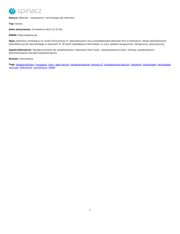 1 Nazwa: Webrise - rozwiązania i technologie dla internetu Typ