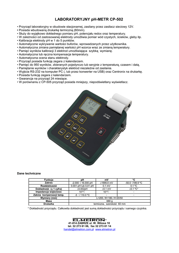 LABORATORYJNY pH-METR CP-502