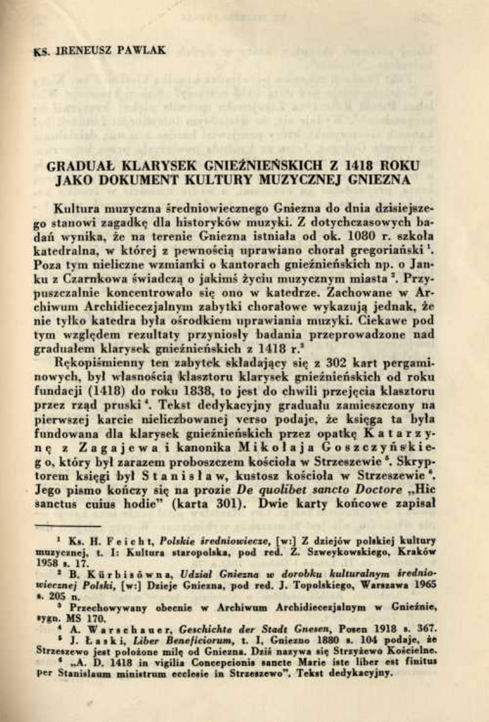 GRADUAŁ KLARYSEK GNIEŹNIEŃSKICH Z 1418 ROKU JAKO