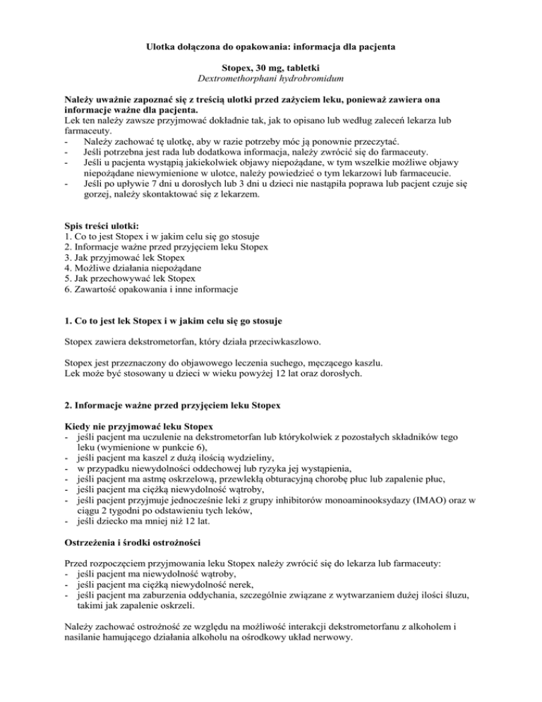 Stopex 30 mg Produkty lecznicze zarejestrowane w Polsce