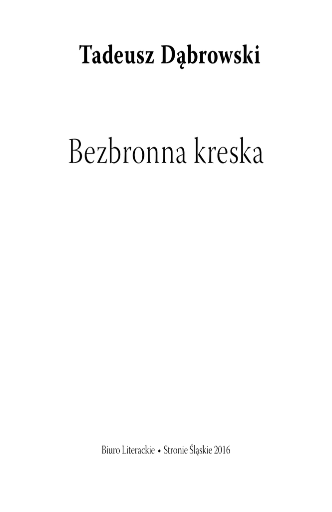 Tadeusz Dąbrowski Bezbronna kreska Biuro Literackie • Stronie Śląskie 2016 4 1 Z nacie dobrze ten obrazek z kreskówek i najlepszych filmów trzeciej kategorii: bohater płynący środkiem wielkiej rzeki na łódce, tratwie, albo uczepiony kawałka pnia, spostrzega nagle, że horyzont się urywa, że łagodnie wzmaga się szum opadającej z wysokości wody, rzeka jest zbyt głęboka, by wryć się dłońmi w dno, więc nasz zajączek, kowboj czy uczestnik familijnego pikniku zaczyna desperacko wiosłować w stronę brzegu, przegania wodę za siebie, ale woda jak na złość miękka, śliska, wodnista, szum się wzmaga i miesza z szumem krwi uderzającej do skroni, nasz bohater wie już, że nie zdąży, w ostatniej chwili godzi się na wodospad, nie liczy na wiele, ale jednak pojawia się w nim wątła nadzieja, że upadek będzie bezbolesny, że pogrąży się w czarnej toni z płucami pełnymi powietrza i po niedługim czasie wynurzy, dryfując ku zielonym zakolom. A co jeśli bohater jest sam sobie pniakiem, wodospadem i rzeką? Co jeśli jedyny wodospad, jaki zna, burczy mu teraz w żołądku, gdy siedzi na peronie i słyszy narastający szum tłumu i metra linii G, pchającego przed sobą kilka niewidzialnych wagonów stęchlizny? – Czy to jest jakaś aluzja do Malewicza? – zapytała głosem przypominającym tasiemkę. – Tak – odpowiedziałem odruchowo – to taka wariacja polskiej artystki na temat Czarnego kwadratu, dosyć bezlitosna, ale dowcipna, tak mi się wydaje, w każdym razie świetnie pasuje na okładkę mojej książki. 7 – To twoja książka? – tasiemka zafalowała w powietrzu. Dopiero teraz odwróciłem się w jej stronę i zeskanowałem w spokoju jej twarz z czułością i precyzją dłoni niewidomego. Miała dwadzieścia parę lat, oczy tak intensywnie niebieskie, że gdybym zobaczył je w filmie, na obrazie lub zdjęciu, uznałbym je za szczyt kiczu, rudawe brwi, wysokie czoło, nos lekko zadarty z dziurkami tak małymi, że nie mogą służyć do oddychania, są po prostu, by być i cieszyć, i śmieszyć, długie włosy w kolorze makaronu (jedno jajko na kilogram mąki), spięte niedbale w samurajski kok, i bladą skórę, jak piaszczysty pejzaż poprzecinany rzekami i rzeczułkami żył. – Tak, wiersze… To zawsze brzmi niezręcznie, jakby się człowiek przyznawał do jakiejś wstydliwej choroby. – Wspaniale, gratuluję. Mogę zerknąć? – Jasne. Poznałem parę dni temu aktora, nazywa się Steve, grał niewielką rolę w Skazanych na Shawshank, podwożąc mnie na lotnisko, kazał mi czytać na głos. „Czytaj po angielsku – mówił – nie pozwól nikomu robić tego za siebie, bo spieprzy sprawę, czytaj sam, będziesz miał lepszy kontakt z publicznością”. Najbardziej interesowała go wymowa słowa copulation. „Włóż w nie więcej energii – naciskał. – Czy było to zwykłe, techniczne pieprzenie, czy miałeś z tego chociaż trochę frajdy? Jeśli miałeś, daj mi to poczuć. No, jeszcze raz, trochę silniej i z większą wibracją w głosie!”. Dopiero w okolicach lotniska zorientowałem się, że Steve chciał mnie przelecieć. – Podczytuję sobie przed jutrzejszym spotkaniem – tłumaczę się, żeby jakoś zagadać ten nieznośny czas, gdy jej patyczkowate dłonie wertują moją książkę, gdy jej kiczowate oczy rozbierają mojego bohatera, mnie, do rosołu. 8 – Dlaczego zaciekawił cię Malewicz, masz coś wspólnego ze sztuką? – pytam, by nie dawać jej przewagi. – Skończyłam architekturę, robię doktorat, mamy ze znajomymi studio na Manhattanie, w Chelsea. Wreszcie pojawia się metro. – Architektura, wspaniale! – wciąż nie potrafię dobrze zagrać amerykańskiego entuzjazmu. – Miło było cię poznać – mówię z przyklejonym uśmiechem, biorę tomik z jej rąk i wsiadam do ostatniego wagonu absolutnie innymi drzwiami niż ona. Wstaję od komputera, idę do łazienki, przemywam twarz, przez chwilę szukam w lustrze nowych siwych włosów, nie dezerteruj, pisz, wracaj do biurka, jeśli wystraszysz się, przegrasz, pisz, a raczej spisuj, bo to wszystko już jest, nic nie wymyślaj, twoja zaokrąglona od żarcia i picia twarz przywołuje cię do porządku, twój nowy siwy włos każe ci wracać. Metalowa puszka – czy wagony robi się tu ze zrecyklingowanych puszek? – trzęsie się i przechyla na zakrętach jak bobslej. Nie patrzeć na drugi koniec, skupić się na popisie bezdomnego czarnoskórego komika, który wygłasza swój monodram o złym rządzie, kredytach i dyskryminacji rasowej bez najmniejszego zająknięcia, z perfekcyjnym wyczuciem czasu, dokładnie pomiędzy Nassau i Lorimer Street. Wysiadam, niesie mnie ludzka masa w stronę przystanku szarej linii, a pośród tej masy, tuż przede mną, podejrzanie pojedynczy obiekt – ona w swoim beżowym płaszczu, legginsach i białych płóciennych kapciach (inne określenie nie przychodzi mi do głowy) z odsłoniętymi piętami wielkości kurzych jaj (co ja z tymi jajami?). Nie mogłem tak iść za nią w ścisku, dysząc jej w kark, w pokrytą białym pierzem deltę kręgosłupa. Przyspieszyłem kroku i zostawiłem ją w tyle na pastwę innych zboczeńców. 9 Szare metro ruszyło, usiadłem między Chinką, rozmawiającą ze swoim iPodem, a młodym elegancikiem w spodniach w kant, brązowym kraciastym swetrze pod taliowaną marynarką, z paznokciami pokrytymi bezbarwnym lakierem. Facet był wyraźnie poirytowany, szukał swojego miejsca w świecie, ale gdy metro wjechało w czerń, jego GPS przestał działać. Po kilku minutach znów ją widzę, stoi trzy, cztery metry ode mnie, wie, że ją zauważyłem. Trzyma w ręce półlitrową kawę (kiedy zdążyła ją kupić?) i patrzy na mnie przez moment z ciepłą przekorą, jej zaczerwienione powieki otwierają się i zamykają w zwolnionym tempie jak wysuwane światła austina, w którym Steve udzielał mi bezinteresownie lekcji wymowy, nie ma najmniejszego zamiaru do mnie podchodzi
