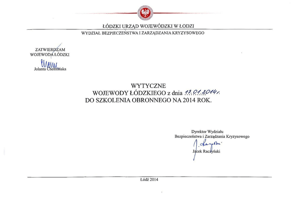 Wytyczne Wojewody Łódzkiego z dnia 17 stycznia 2014 r. do