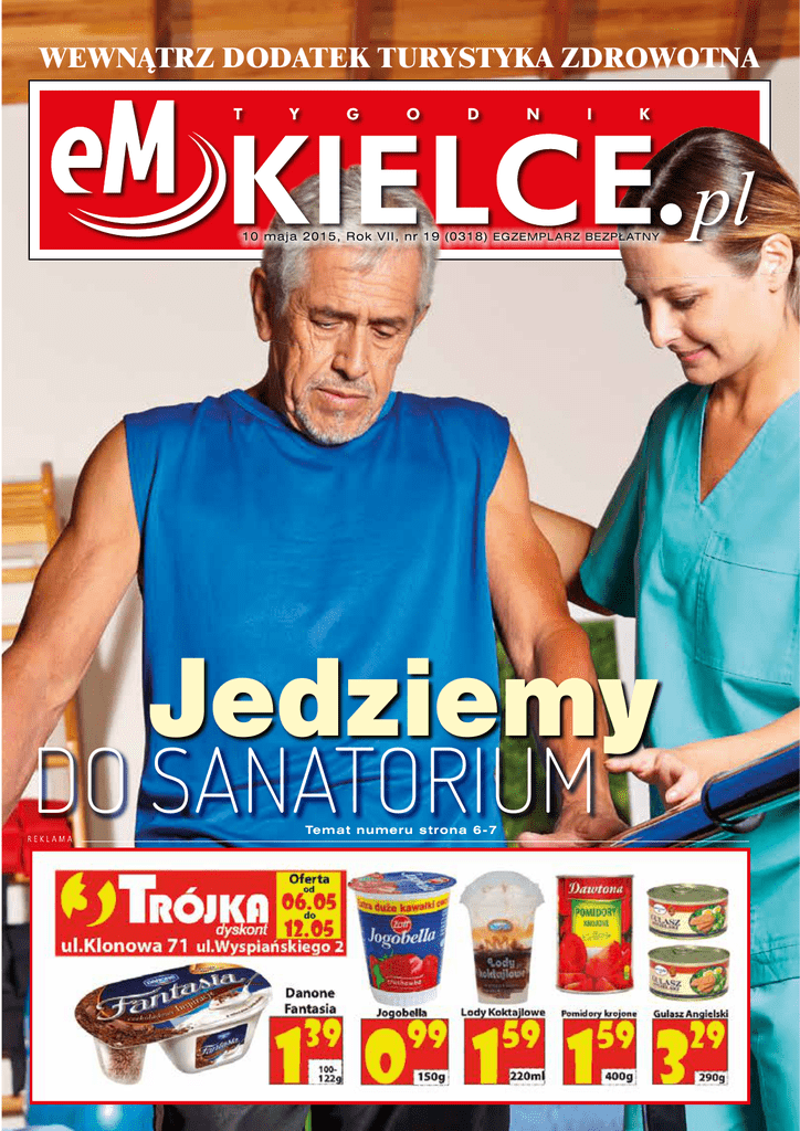 WEWNĄTRZ DODATEK TURYSTYKA ZDROWOTNA 10 maja 2015, Rok VII, nr 19 (0318) EGZEMPL ARZ BEZPŁ ATNY Jedziemy DO SANATORIUM Temat numeru strona 6-7 Temat numeru strona 6-7 KIELCE AKTUALNOŚCI Rotmistrz patronem Ulica Armii Ludowej otrzymała nową nazwę. Teraz będzie nosić imię rotmistrza Witolda Pileckiego. Taką decyzję podjęli kieleccy radni podczas czwartkowej sesji RM. Ulica Witolda Pileckiego to krótki trakt będący przedłużeniem ulicy Wapiennikowej, która w przyszłości zostanie rozbudowana o kilkaset metrów. Oprócz tego imię Stanisława Mikołajczyka otrzymało rondo u zbiegu ul. 1 Maja i Hubalczyków, a Żołnierzy Wyklętych - ulica przecinająca ul. Lódzką w pobliżu Targów Kielce. /ds/ Zachód w budowie Trwa przebudowa ul. Grunwaldzkiej i alei Szajnowicza–Iwanowa. W nadchodzącym tygodniu ruch powinien odbywać się jezdnią południową na całym przebudowywanym odcinku. Trwają też prace przy budowie estakady nad ul. Grunwaldzką. – Wykonawca betonuje już kapy chodnikowe oraz montuje gzymsy i krawężniki – mówi Jarosław Skrzydło, rzecznik MZD. W związku z wymianą gazociągu, zakończenie inwestycji może się opóźnić. – Wrzesień jest terminem najbardziej prawdopodobnym – dodaje rzecznik. Na tej trasie powstaną też dwa ronda turbinowe. Koszt inwestycji to 27 mln zł. /ds/ Światowa czołówka Świętokrzyskie Centrum Onkologii otrzymało akredytację Międzynarodowego Towarzystwa Senologicznego, zajmującego się badaniami nad rakiem piersi. Stawia to kielecką lecznicę w pierwszym szeregu europejskich, 2 10 MAJA 2015 ponad dziesięciu nabywców, z którymi prowadzone są rozmowy. Termin kolejnego przetargu nie jest znany. /ds/ Plakaty w IDK Czytelnia Instytutu Designu prezentuje kolejną kolekcję grafik. Tym razem to zbiór plakatów i ilustracji Magdy Pilaczyńskiej, które powstały w ciągu ostatnich kilku lat przy okazji różnych projektów i wydarzeń. To materiały prasowe, ale też plakaty stworzone dla dzieci. Dzieła nawiązują do estetyki lat 50. i 60. ubiegłego wieku. Artystka wykorzystuje kolaż i łączy elementy z różnych stylistyk. Na wystawie pojawiła się też seria talerzy „Look At Me Plates”. Pilaczyńska wyszukała naczynia na targach staroci, po czym naniosła na nie nowe ilustracje, nadając przedmiotom drugie życie. Wystawa Wybieramy prezydenta Dziś wybieramy Prezydenta Rzeczypospolitej Polskiej. W Kielcach głosowanie w Czytelni IDK będzie dostępna do 28 /ds/ zorganizowane zostało w 93 obwodach: 82 stałych oraz 11 odrębnych, takich czerwca. jak domy pomocy społecznej, szpitale i areszt. 36 lokali wyborczych przystosowanych jest do potrzeb osób niepełnosprawnych. Głosować będziemy od Oswajani ze sztuką godziny 7 do 21. Na stronie Urzędu Miasta Kielce (http://www.um.kielce.pl/ Rozbudzenie kreatywności i zainterewybory–prezydenta–2015) znajdują się wszystkie szczegółowe informacje dla sowań współczesną sztuką to główne wyborców. Dostępny jest też film adresowany do osób niesłyszących, ktory zacele programu „Oswajanie sztuki”, wiera ważne informacje dotyczące głosowania. Jeżeli dojdzie do drugiej tury, realizowanego przez Biuro Wystaw odbędzie się ona w niedzielę, 24 maja. /rm/ Artystycznych. W ramach projektu odbywają się zajęcia oraz warsztaty dla dzieci i młodzieży, na których młodzi a nawet światowych placówek medycz- rokiem życia, ale najnowsze badania ludzie poznają różne kierunki w sztuce. nych. Bardzo wysoko został oceniony pokazują, że chorują już coraz młodsze Temat tego miesiąca to sztuka kine„breast unit”, czyli specjalny zespół zaj- pacjentki. W Świętokrzyskiem rocznie tyczna, której głównym wyrazem mujący się diagnostyką i leczeniem raka wykrywa się 600 nowotworów. /rm/ jest ruch. Magdalena Leśniak z BWA piersi. Tworzą go m.in. patolog, radiopodkreśla, że uczestnicy warsztatów log, psycholog, onkolog kliniczny, chiCo dalej z KKSM? stale poznają coś nowego. – Wybierurg onkolog. Aby w Polsce zapewnić Wkrótce możemy się spodziewać kolej- ramy i realizujemy takie zagadnienia, fachową opiekę wszystkim potrzebująnej próby sprzedaży KKSM – takie rozcym, powinno funkcjonować 80 takich wiązanie popiera rada wierzycieli spółzespołów. Póki co są dwa, w tym jeden ki. Przypomnijmy, że do poprzednich u nas. Przypomnijmy, że rak piersi najdwóch aukcji nie zgłosił się żaden chętczęściej atakuje kobiety między 50 a 69 ny. W pierwszej cena przedsiębiorstwa wynosiła ponad 100 mln zł, w drugiej została obniżona do 67 mln zł. – W opinii rady wierzycieli cena ustalona do drugiego przetargu nie powinna się których większość dzieci nie zna i nie zmienić – mówi Tycjan Saltarski, syn- pozna nawet w szkole. Wszystko po dyk Kopalni. Według syndyka kupnem to, by pokazać, że sztuka nie musi przedsiębiorstwa zainteresowanych jest być nudna – wyjaśnia. Kolejne zaję- KIELCE AKTUALNOŚCI cia w ramach programu „Oswajanie sztuki” odbędą się 12 maja. Szczegółowe informacje znaleźć można na stronie www.bwakielce.art.pl /ig/ „Urodziny u Karola” Rocznicę poświęcenia oraz urodziny patrona świętuje kościół pw. św. Jana Pawła II przy ulicy Wesołej w Kielcach. Z tej okazji w niedzielę, 24 maja, odbędzie się festyn rodzinny „Urodziny Karola”. Uroczystości rozpocznie Msza święta o godzinie 14. Następnie uczestnicy przejdą na plac Artystów. Tu zaplanowano między innymi występy małych artystów, spektakl Teatru „Eden” oraz show Koziołka Matołka. W imprezie wezmą udział cztery przedszkola katolickie: Przedszkole Sióstr Salezjanek, Niepubliczne Przedszkole im. Św. Faustyny „Serduszko”, Niepubliczne Przedszkole Zgromadzenia Sióstr Miłosierdzia im. Wincentego a Paulo i Prywatne Przedszkole Katolickie im. Kard. Pietro Marcellino Corradiniego. Współorganizatorami są Radio eM Kielce, Wydawnictwo Jedność, Europejskie Centrum Bajki z Pa