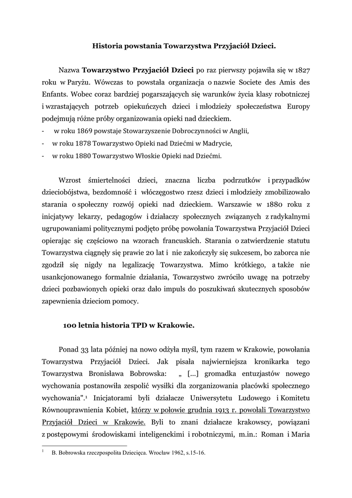 Historia TPD - Towarzystwo Przyjaciół Dzieci w Krakowie