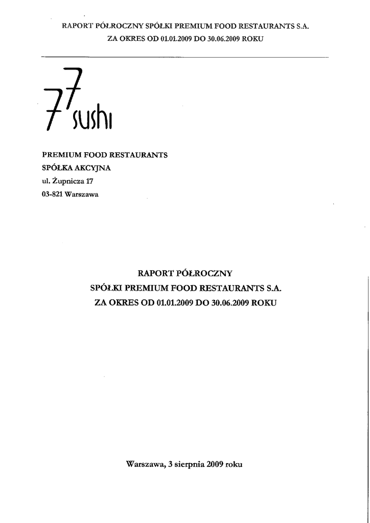 RAPORT POLROCZNY SPOLKI PREMIUM FOOD RESTAURANTS S.A.