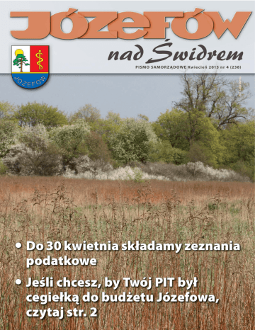 Fot. Lidia Dańko PISMO SAMORZĄDOWE Kwiecień 2013 nr 4 (238) • Do 30 kwietnia składamy zeznania podatkowe • Jeśli chcesz, by Twój PIT był cegiełką do budżetu Józefowa, czytaj str. 2 PISMO SAMORZĄDOWE Kwiecień 2013 nr 4 (238) 1 LUDZIE MÓWIĄ, ŻE… nad Świdrem Jest 50 gmin w Polsce, w których z inicjatywy samorządu wprowadzono tzw. Karty Dużej Rodziny, obejmujące zespół ulg. Adresatem tej karty są rodziny z minimum trojgiem dzieci, ale również rodzice samotnie wychowujący co najmniej trójkę dzieci, a bywa, że także rodziny zastępcze. W Józefowie od dawna obowiązują zniżki na wspólny rodzinny wypad na basen, są zniżki w przedszkolach publicznych. Czy widzisz potrzebę wprowadzenia w naszym mieście Karty Dużej Rodziny i w jakich formach miasto powinno jeszcze wspomagać duże rodziny? Michał Karp z ul. Polnej – Jestem ojcem trójki dzieci i taka karta byłaby dla nas fantastyczna. Powiem dlaczego – mieszkamy w Józefowie od pięciu lat, koszty utrzymania znacznie wzrosły, podczas gdy nasze zarobki utrzymują się na tym samym poziomie. Potrzeby te wzrastają z przyjściem na świat kolejnego dziecka, szczególnie wtedy, kiedy rozpoczyna ono edukację przedszkolną. Każdy zastrzyk, który mógłby spowodować poprawę domowego budżetu, byłby dobry. Czytałem na temat Kart Dużej Rodziny i myślałem nad tym, gdzie w naszym mieście można byłoby ją wprowadzić? Nawet ostatnio zastanawiałem się czy Józefów skorzysta z takiej możliwości – mamy przecież prężnie działający samorząd. Do kina dzieci chodziły w ramach zajęć przedszkolnych, place zabaw są super. Posiadamy józefowską kartę basenową – wykupiliśmy roczny abonament i korzystamy z pływalni. W przedszkolu samorządowym istnieje 25-procentowa zniżka w przypadku, gdy uczęszcza do niego dwoje rodzeństwa. Zastanawiam się nad zapisaniem dwóch chłopców do jakiejś sekcji sportowej – może w tym obszarze można byłoby wprowadzić ulgi? Dobrym pomysłem byłoby także włączenie się do karty firm prywatnych, które wychodząc z preferencyjnymi warunkami nie musiałyby szukać klienta. Ewa Majzner-Dziedzic z ul. Wawerskiej – To dobry pomysł, nie rozumiem tylko dlaczego np. rodziny z dwójką dzieci miałyby być z tej karty wyłączone? W obecnych czasach nie każdy może pozwolić sobie na luksus posiadania trójki potomstwa. Jeśli chodzi o zniżki na komunikację, to nie posiadamy własnego transportu. Dobrym pomysłem są ulgi dla rodzin korzystających z basenu. Moim zdaniem miasto powinno włączyć do takiej karty ulgi w przedszkolu za godziny wykraczające ponad podstawę programową. Dla mnie dużym bonusem jest becikowe otrzymywane od miasta. Co jeszcze? Prawdę mówiąc, mam dwoje jeszcze małych dzieci, zatem wszystko przed nami. Katarzyna Oleszkiewicz z ul. Szkolnej – Jako mama piątki dzieci jestem za wprowadzeniem Karty Dużej Rodziny. W jakich obszarach? Dobre pytanie. Jak na dużą rodzinę przystało, potrzeb mamy mnóstwo. Skupiłabym się natomiast na wydatkach związanych ze szkołą. Dofinansowanie jest potrzebne przede wszystkim na obiady, wycieczki, które wiążą się ze sporymi kosztami. Idąc tym śladem z pewnością dużym odciążeniem dla rodzinnego budżetu byłaby także pomoc w zakupie podręczników. Takie dofinansowanie owszem jest, ale nie rozumiem dlaczego nie we wszystkich klasach – w gimnazjum nie ma go wcale, a przecież książki są bardzo drogie. To są właśnie formy, w których widziałabym pomoc samorządu. Raczej nie byłabym zainteresowana ulgami na pływalnię i pozostałe formy rekreacji, chociaż inni mieszkańcy mogą oczywiście skorzystać. Nie mam po prostu na nie czasu. Rozpiętość wiekowa pomiędzy moimi dziećmi jest istotna, każde z nich ma swoje potrzeby, a ja muszę poświęcić im dużo czasu. Krzysztof Żelechowski z ul. Łokietka – Dlaczego by nie wprowadzić takiej karty? Jeśli ma to pomóc wielodzietnym rodzinom, to jak najbardziej. Byłaby to może jakaś forma zachęcająca do powiększania rodzin. Obecny rząd prowadzi politykę prorodzinną, choć mu to nie wychodzi. Pierwsze, co przychodzi mi na myśl, to dofinansowanie zakupu opału zimowego, przynajmniej rodzinom w trudnej sytuacji finansowej. Wiem, że miasto dotuje rodzinne ulgi na basen w Integracyjnym Centrum Sportu i Rekreacji. Może udałoby się podciągnąć te zniżki również na sekcje sportowe i treningi, w których uczestniczą dzieci z rodzin wielodzietnych. Tekst i foto: Sylwia Papis 22 PISMO SAMORZĄDOWE Kwiecień 2013 nr 4 (238) Oznacz swoją nieruchomość Przypominamy, że obowiązkiem właściciela każdej nieruchomości zabudowanej lub przeznaczonej pod zabudowę jest umieszczenie na tej nieruchomości, w widocznym miejscu, tabliczki z numerem porządkowym posesji oraz nazwą ulicy, do której jest przyporządkowany (art. 47b ust. 1 ustawy z dnia 17 maja 1989 r. – Prawo geodezyjne i kartograficzne, Dz. U. z 2005 r. nr 240, poz. 2027 ze zm.). Właściciel musi jednak nie tylko umieścić tabliczkę, ale również dbać o to, aby była ona utrzymana w należytym stanie. Oznaczenie nieruchomości musi być bowiem zawsze czytelne i widoczne także po zmroku. Trzeba zatem zwrócić uwagę na to, czy tabliczka nie została zasłonięta, np. przez drzewa czy krzewy rosnące na działce. Za niedopełnienie tego obowiązku grozi kara grzywny w wysokości do 250 złotych (art. 64 ustawy z dnia 20 maja 1971 r. – Kodeks wykroczeń, Dz. U. z 2007 r. nr 109, poz. 756 ze zm.). Zapytaj sąsiada, gdzie PIT swój składa Jeszcze nie jest za późno – PIT składamy do 30 kwietnia. Jeśli mieszkasz w Józefowie, korzystasz z naszej infrastruktury, ale nie jesteś tu zameldowany, możesz swoim PIT-em wspomóc nasze miasto. Bez meldunku! Jak informuje Urząd Skarbowy w Otwocku – porównując styczeń 2011 do stycznia 2012 roku znacznie wzrosła liczba osób z Józefowa rozliczająca swój PIT w Otwocku. Jeżeli n