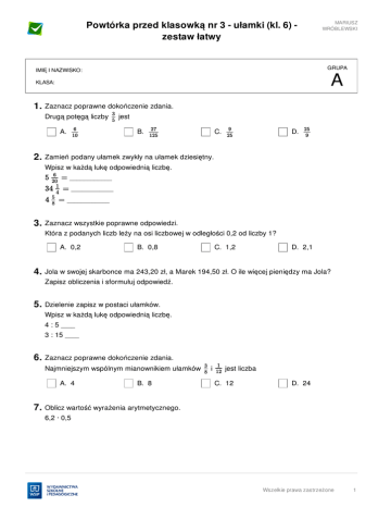Powtórka przed klasowką nr 3 - ułamki (kl. 6)