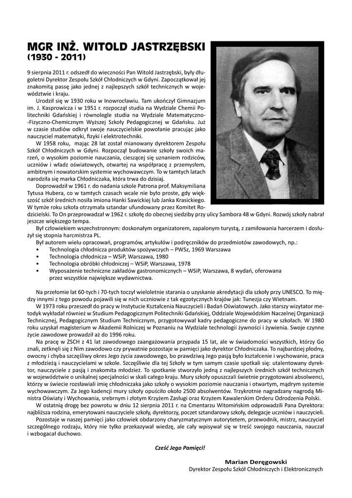 MGR INś. WITOLD JASTRZĘBSKI (1930 - 2011) ϵƐŝĞƌƉŶŝĂϮϬϭϭƌ͘ŽĚƐnjĞĚųĚŽǁŝĞĐnjŶŽƑĐŝWĂŶtŝƚŽůĚ:ĂƐƚƌnjħďƐŬŝ͕ďLJųLJĚųƵŐŽůĞƚŶŝLJƌĞŬƚŽƌĞƐƉŽųƵ^njŬſųŚųŽĚŶŝĐnjLJĐŚǁ'ĚLJŶŝ͘ĂƉŽĐnjČƚŬŽǁĂųũĞũ njŶĂŬŽŵŝƚČ ƉĂƐƐħ ũĂŬŽ ũĞĚŶĞũ nj ŶĂũůĞƉƐnjLJĐŚ ƐnjŬſų ƚĞĐŚŶŝĐnjŶLJĐŚ ǁ ǁŽũĞǁſĚnjƚǁŝĞŝŬƌĂũƵ͘ hƌŽĚnjŝųƐŝħǁϭϵϯϬƌŽŬƵǁ/ŶŽǁƌŽĐųĂǁŝƵ͘dĂŵƵŬŽŷĐnjLJų'ŝŵŶĂnjũƵŵ ŝŵ͘:͘<ĂƐƉƌŽǁŝĐnjĂŝǁϭϵϱϭƌ͘ƌŽnjƉŽĐnjČųƐƚƵĚŝĂŶĂtLJĚnjŝĂůĞŚĞŵŝŝWŽůŝƚĞĐŚŶŝŬŝ 'ĚĂŷƐŬŝĞũ ŝ ƌſǁŶŽůĞŐůĞ ƐƚƵĚŝĂ ŶĂ tLJĚnjŝĂůĞ DĂƚĞŵĂƚLJĐnjŶŽͲ&ŝnjLJĐnjŶŽͲŚĞŵŝĐnjŶLJŵ tLJǏƐnjĞũ ^njŬŽųLJ WĞĚĂŐŽŐŝĐnjŶĞũ ǁ 'ĚĂŷƐŬƵ͘ :ƵǏ ǁĐnjĂƐŝĞƐƚƵĚŝſǁŽĚŬƌLJųƐǁŽũĞŶĂƵĐnjLJĐŝĞůƐŬŝĞƉŽǁŽųĂŶŝĞ ƉƌĂĐƵũČĐũĂŬŽ ŶĂƵĐnjLJĐŝĞůŵĂƚĞŵĂƚLJŬŝ͕ĮnjLJŬŝŝĞůĞŬƚƌŽƚĞĐŚŶŝŬŝ͘ tϭϵϱϴƌŽŬƵ͕ŵĂũČĐϮϴůĂƚnjŽƐƚĂųŵŝĂŶŽǁĂŶLJĚLJƌĞŬƚŽƌĞŵĞƐƉŽųƵ ^njŬſų ŚųŽĚŶŝĐnjLJĐŚ ǁ 'ĚLJŶŝ͘ ZŽnjƉŽĐnjČų ďƵĚŽǁĂŶŝĞ ƐnjŬŽųLJ ƐǁŽŝĐŚ ŵĂƌnjĞŷ͕ŽǁLJƐŽŬŝŵƉŽnjŝŽŵŝĞŶĂƵĐnjĂŶŝĂ͕ĐŝĞƐnjČĐĞũƐŝħƵnjŶĂŶŝĞŵƌŽĚnjŝĐſǁ͕ ƵĐnjŶŝſǁ ŝ ǁųĂĚnj ŽƑǁŝĂƚŽǁLJĐŚ͕ ŽƚǁĂƌƚĞũ ŶĂ ǁƐƉſųƉƌĂĐħ nj ƉƌnjĞŵLJƐųĞŵ͕ ĂŵďŝƚŶLJŵŝŶŽǁĂƚŽƌƐŬŝŵƐLJƐƚĞŵŝĞǁLJĐŚŽǁĂǁĐnjLJŵ͘dŽǁƚĂŵƚLJĐŚůĂƚĂĐŚ ŶĂƌŽĚnjŝųĂƐŝħŵĂƌŬĂŚųŽĚŶŝĐnjĂŬĂ͕ŬƚſƌĂƚƌǁĂĚŽĚnjŝƐŝĂũ͘ ŽƉƌŽǁĂĚnjŝųǁϭϵϲϭƌ͘ĚŽŶĂĚĂŶŝĂƐnjŬŽůĞWĂƚƌŽŶĂƉƌŽĨ͘DĂŬƐLJŵŝůŝĂŶĂ dLJƚƵƐĂ,ƵďĞƌĂ͕ĐŽǁƚĂŵƚLJĐŚĐnjĂƐĂĐŚǁĐĂůĞŶŝĞďLJųŽƉƌŽƐƚĞ͕ŐĚLJǁŝħŬƐnjŽƑđƐnjŬſųƑƌĞĚŶŝĐŚŶŽƐŝųĂŝŵŝŽŶĂ,ĂŶŬŝ^ĂǁŝĐŬŝĞũůƵď:ĂŶŬĂ<ƌĂƐŝĐŬŝĞŐŽ͘ tƚLJŵǏĞƌŽŬƵƐnjŬŽųĂŽƚƌnjLJŵĂųĂƐnjƚĂŶĚĂƌƵĨƵŶĚŽǁĂŶLJƉƌnjĞnj<ŽŵŝƚĞƚZŽĚnjŝĐŝĞůƐŬŝ͘dŽKŶƉƌnjĞƉƌŽǁĂĚnjĂųǁϭϵϲϮƌ͘ƐnjŬŽųħĚŽŽďĞĐŶĞũƐŝĞĚnjŝďLJƉƌnjLJƵůŝĐLJ^ĂŵďŽƌĂϰϴǁ'ĚLJŶŝ͘ZŽnjǁſũƐnjŬŽųLJŶĂďƌĂų ũĞƐnjĐnjĞǁŝħŬƐnjĞŐŽƚĞŵƉĂ͘ LJųĐnjųŽǁŝĞŬŝĞŵǁƐnjĞĐŚƐƚƌŽŶŶLJŵ͗ĚŽƐŬŽŶĂųLJŵŽƌŐĂŶŝnjĂƚŽƌĞŵ͕njĂƉĂůŽŶLJŵƚƵƌLJƐƚČ͕njnjĂŵŝųŽǁĂŶŝĂŚĂƌĐĞƌnjĞŵŝĚŽƐųƵǏLJųƐŝħƐƚŽƉŶŝĂŚĂƌĐŵŝƐƚƌnjĂW>͘ LJųĂƵƚŽƌĞŵǁŝĞůƵŽƉƌĂĐŽǁĂŷ͕ƉƌŽŐƌĂŵſǁ͕ĂƌƚLJŬƵųſǁŝƉŽĚƌħĐnjŶŝŬſǁĚŽƉƌnjĞĚŵŝŽƚſǁnjĂǁŽĚŽǁLJĐŚ͕ŶƉ͗͘ ͻ dĞĐŚŶŽůŽŐŝĂĐŚųŽĚŶŝĐnjĂƉƌŽĚƵŬƚſǁƐƉŽǏLJǁĐnjLJĐŚʹWt^nj͕ϭϵϲϵtĂƌƐnjĂǁĂ ͻ dĞĐŚŶŽůŽŐŝĂĐŚųŽĚŶŝĐnjĂʹt^ŝW͕tĂƌƐnjĂǁĂ͕ϭϵϴϬ ͻ dĞĐŚŶŽůŽŐŝĂŽďƌſďŬŝĐŚųŽĚŶŝĐnjĞũʹt^ŝW͕tĂƌƐnjĂǁĂ͕ϭϵϳϴ ͻ tLJƉŽƐĂǏĞŶŝĞƚĞĐŚŶŝĐnjŶĞnjĂŬųĂĚſǁŐĂƐƚƌŽŶŽŵŝĐnjŶLJĐŚʹt^ŝW͕tĂƌƐnjĂǁĂ͕ϴǁLJĚĂŷ͕ŽĨĞƌŽǁĂŶĂ ƉƌnjĞnjǁƐnjLJƐƚŬŝĞŶĂũǁŝħŬƐnjĞǁLJĚĂǁŶŝĐƚǁĂ͘ EĂƉƌnjĞųŽŵŝĞůĂƚϲϬͲƚLJĐŚŝϳϬͲƚLJĐŚƚŽĐnjLJųǁŝĞůŽůĞƚŶŝĞƐƚĂƌĂŶŝĂŽƵnjLJƐŬĂŶŝĞĂŬƌĞĚLJƚĂĐũŝĚůĂƐnjŬŽųLJƉƌnjLJhE^K͘dŽŵŝħĚnjLJŝŶŶLJŵŝnjƚĞŐŽƉŽǁŽĚƵƉŽũĂǁŝůŝƐŝħǁŶŝĐŚƵĐnjŶŝŽǁŝĞnjƚĂŬĞŐnjŽƚLJĐnjŶLJĐŚŬƌĂũſǁũĂŬ͗dƵŶĞnjũĂĐnjLJtŝĞƚŶĂŵ͘ tϭϵϳϯƌŽŬƵƉƌnjĞƐnjĞĚųĚŽƉƌĂĐLJǁ/ŶƐƚLJƚƵĐŝĞ<ƐnjƚĂųĐĞŶŝĂEĂƵĐnjLJĐŝĞůŝŝĂĚĂŷKƑǁŝĂƚŽǁLJĐŚ͘:ĂŬŽƐƚĂƌƐnjLJǁŝnjLJƚĂƚŽƌŵĞƚŽĚLJŬǁLJŬųĂĚĂųƌſǁŶŝĞǏǁ^ƚƵĚŝƵŵWĞĚĂŐŽŐŝĐnjŶLJŵWŽůŝƚĞĐŚŶŝŬŝ'ĚĂŷƐŬŝĞũ͕KĚĚnjŝĂůĞtŽũĞǁſĚnjŬŝŵEĂĐnjĞůŶĞũKƌŐĂŶŝnjĂĐũŝ dĞĐŚŶŝĐnjŶĞũ͕WĞĚĂŐŽŐŝĐnjŶLJŵ^ƚƵĚŝƵŵdĞĐŚŶŝĐnjŶLJŵ͕ƉƌnjLJŐŽƚŽǁLJǁĂųŬĂĚƌLJƉĞĚĂŐŽŐŝĐnjŶĞĚŽƉƌĂĐLJǁƐnjŬŽųĂĐŚ͘tϭϵϴϬ ƌŽŬƵƵnjLJƐŬĂųŵĂŐŝƐƚĞƌŝƵŵǁŬĂĚĞŵŝŝZŽůŶŝĐnjĞũǁWŽnjŶĂŶŝƵŶĂtLJĚnjŝĂůĞƚĞĐŚŶŽůŽŐŝŝǏLJǁŶŽƑĐŝŝǏLJǁŝĞŶŝĂ͘^ǁŽũĞĐnjLJŶŶĞ ǏLJĐŝĞnjĂǁŽĚŽǁĞƉƌŽǁĂĚnjŝųĂǏĚŽϭϵϵϲƌŽŬƵ͘ EĂƉƌĂĐħǁ^,njϰϭůĂƚnjĂǁŽĚŽǁĞŐŽnjĂĂŶŐĂǏŽǁĂŶŝĂƉƌnjLJƉĂĚĂϭϱůĂƚ͕ĂůĞǁƑǁŝĂĚŽŵŽƑĐŝǁƐnjLJƐƚŬŝĐŚ͕ŬƚſƌnjLJ'Ž njŶĂůŝ͕njĞƚŬŶħůŝƐŝħnjEŝŵnjĂǁŽĚŽǁŽĐnjLJƉƌLJǁĂƚŶŝĞƉŽnjŽƐƚĂũĞǁƉĂŵŝħĐŝũĂŬŽĚLJƌĞŬƚŽƌŚųŽĚŶŝĐnjĂŬĂ͘dŽŶĂũďĂƌĚnjŝĞũƉųŽĚŶLJ͕ ŽǁŽĐŶLJŝĐŚLJďĂƐnjĐnjħƑůŝǁLJŽŬƌĞƐ:ĞŐŽǏLJĐŝĂnjĂǁŽĚŽǁĞŐŽ͕ďŽƉƌĂǁĚnjŝǁČ:ĞŐŽƉĂƐũČďLJųŽŬƐnjƚĂųĐĞŶŝĞŝǁLJĐŚŽǁĂŶŝĞ͕ƉƌĂĐĂ njŵųŽĚnjŝĞǏČŝŶĂƵĐnjLJĐŝĞůĂŵŝǁƐnjŬŽůĞ͘^njĐnjħƑůŝǁŝĞĚůĂƚĞũ^njŬŽųLJǁƚLJŵƐĂŵLJŵĐnjĂƐŝĞƐƉŽƚŬĂůŝƐŝħ͗ƵƚĂůĞŶƚŽǁĂŶLJĚLJƌĞŬƚŽƌ͕ŶĂƵĐnjLJĐŝĞůĞnjƉĂƐũČŝnjŶĂŬŽŵŝƚĂŵųŽĚnjŝĞǏ͘dŽƐƉŽƚŬĂŶŝĞƐƚǁŽƌnjLJųŽũĞĚŶČnjŶĂũůĞƉƐnjLJĐŚƑƌĞĚŶŝĐŚƐnjŬſųƚĞĐŚŶŝĐnjŶLJĐŚ ǁǁŽũĞǁſĚnjƚǁŝĞŽƵŶŝŬĂůŶĞũƐƉĞĐũĂůŶŽƑĐŝǁƐŬĂůŝĐĂųĞŐŽŬƌĂũƵ͘DƵƌLJƐnjŬŽųLJŽƉƵƐnjĐnjĂůŝƑǁŝĞƚŶŝĞƉƌnjLJŐŽƚŽǁĂŶŝĂďƐŽůǁĞŶĐŝ͕ ŬƚſƌnjLJǁƑǁŝĞĐŝĞƌŽnjƐųĂǁŝĂůŝŝŵŝħĐŚųŽĚŶŝĐnjĂŬĂũĂŬŽƐnjŬŽųLJŽǁLJƐŽŬŝŵƉŽnjŝŽŵŝĞŶĂƵĐnjĂŶŝĂŝŽƚǁĂƌƚLJŵ͕ŵČĚƌLJŵƐLJƐƚĞŵŝĞ ǁLJĐŚŽǁĂǁĐnjLJŵ
