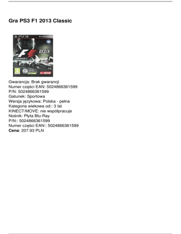 Gra PS3 F1 2013 Classic Gwarancja: Brak gwarancji Numer części EAN: 5024866361599 P/N: 5024866361599 Gatunek: Sportowa Wersja językowa: Polska - pełna Kategoria wiekowa od:: 3 lat KINECT/MOVE: nie współpracuje Nośnik: Płyta Blu-Ray P/N:: 5024866361599 Numer części EAN:: 5024866361599 Cena: 207.93 PLN Powered by TCPDF (www.tcpdf.org)
