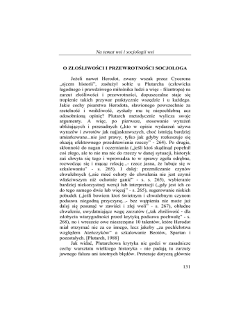 Na temat wsi i socjologii wsi O ZŁOŚLIWOŚCI I PRZEWROTNOŚCI SOCJOLOGA Jeżeli nawet Herodot, zwany wszak przez Cycerona „ojcem historii”, zasłużył sobie u Plutarcha (człowieka łagodnego i prawdziwego miłośnika ludzi a więc - filantropa) na zarzut złośliwości i przewrotności, dopuszczalne staje się tropienie takich przywar praktycznie wszędzie i u każdego. Jakie cechy pisarstwa Herodota, sławionego powszechnie za rzetelność i wnikliwość, zyskały mu tę niepochlebną acz odosobnioną opinię? Plutarch metodycznie wylicza swoje argumenty. A więc, po pierwsze, stosowanie wyrażeń ubliżających i przesadnych („kto w opisie wydarzeń używa wyrazów i zwrotów jak najjaskrawszych, choć istnieją bardziej umiarkowane...nie jest prawy, tylko jak gdyby rozkoszuje się okazją efektownego przedstawienia rzeczy” - 264). Po drugie, skłonność do nagan i oczerniania („jeśli ktoś skądinąd popełnił coś złego, ale to nie ma nic do rzeczy w danej sytuacji, historyk zaś chwyta się tego i wprowadza to w sprawy zgoła odrębne, rozwodząc się i mącąc relację...- rzecz jasna, że lubuje się w szkalowaniu” - s. 265). I dalej: przemilczanie czynów chwalebnych („nie mieć ochoty do chwalenia nie jest czymś właściwszym niż ochotnie ganić” - s. s. 265), wybieranie bardziej niekorzystnej wersji lub interpretacji („gdy jest ich co do tego samego dwie lub więcej” - s. 265), sugerowanie niskich pobudek („jeśli bowiem ktoś świetnym i chwalebnym czynom podsuwa niegodną przyczynę...- bez wątpienia nie może już dalej się posunąć w zawiści i złej woli” - s. 267), obłudne chwalenie, uwydatniające wagę zarzutów („tak złośliwość - dla zdobycia wiarygodności przed krytyką podsuwa pochwałę” - s. 268), no i wreszcie owe nieszczęsne 10 talentów, które Herodot miał otrzymać nie za co innego, lecz jakoby „za pochlebstwa względem Ateńczyków” a szkalowanie Beotów, Spartan i pozostałych. [Plutarch, 1988] Jak widać, Plutarchowa krytyka nie godzi w zasadnicze cechy warsztatu wielkiego historyka - nie padają tu zarzuty jawnego fałszu ani istotnych błędów. Pretensje dotyczą głównie 131 Izabella Bukraba-Rylska uchybień minorum gentium, które jednak Plutarcha, żarliwego patriotę, dotknąć musiały do żywego. Właśnie z tego powodu polemika niekwestionowanego moralnego autorytetu starożytności z powszechnie podziwianym dziejopisem staje się pouczająca i ciekawa. Pokazuje mianowicie, że w świecie ludzkim nie tylko czysta prawda, ale i ewidentne kłamstwo są zjawiskami stosunkowo rzadkimi. O wiele częściej ma się do czynienia z pół i ćwierćprawdą, z nadinterpretacją lub przemilczeniem, z tendencyjną gorliwością lub nadmierną skłonnością do ustępstw. Problematyka wartościowania w naukach społecznych, rozważania nad powinnościami badacza, pytania o dylematy etyczne związane ze stosowaniem określonych technik i narzędzi stanowią istotną część socjologicznej autorefleksji uprawianej także w Polsce. [Ossowski, 1957; Lutyński, 1990; Neyman, 1985] I chociaż przykłady dyskwalifikującego postępowania wśród przedstawicieli tej dyscypliny nawet w trudnych politycznie okresach stanowiły wyjątek, to jednak niewątpliwie ma rację Andrzej Tyszka, pisząc: „prawda o społeczeństwie nie jest...niszczona przez błędy i uchybienia, które uznać by trzeba za haniebnie ciężkie, takie jak manipulacja danymi, umyślny wybór niestosownej metody czy zwykły fałsz”. O wiele groźniejsze, zdaniem cytowanego autora, są raczej owe „dyskretne sposoby przeciągania prawdy na właściwą stronę”, wszelkie eufemizmy i trywializacje, banalizacja problemów i pisanie o tematach zastępczych, posługiwanie się schematami czy wręcz stereotypami, apologetyczne fikcje, propagandowe kamuflaże i medialne besserwisserstwo. [Tyszka, 1987, s. 189] Powszechnie uznawany etos badacza społecznego kładzie nacisk na obiektywizm, wolność od wartościowania, niezależność sądów a zwłaszcza „nieposłuszeństwo w myśleniu”, tym trudniejsze, że obowiązujące zarówno wobec sprawujących władzę jak i samego społeczeństwa. Czasem jednak klarowna opozycja: rządzący - rządzeni, kiedy badacz może wybrać albo rolę „dobroczyńcy ludu” [Berger, 1988], albo 132 Na temat wsi i socjologii wsi też szpiega, którego „oczy zwracają się w dół, a ręce w górę” [Nicolous, 1977, s. 307] zaciera się i traci na znaczeniu. Pracownik nauki naraża się wówczas na uwikłanie w tym bardziej skomplikowane, im mniej oczywiste zależności. Szczególnie perfidnym, bo zakamuflowanym wyrazem utraty autonomii bywa analizowana przez Bourdieu sytuacja, kiedy polityka, media i tzw. opinia publiczna kreują problemy pozorne i skłaniają badacza do ich podjęcia. Zajmowanie się takimi tematami, mającymi status urzędowo lecz nie naukowo uprawomocnionych, prowadzi do konstruowania rzeczywistości społecznej, zamiast do jej objaśniania. Rolą socjologa staje się wówczas legitymizowanie danej kwestii jako naukowej, co z jednej strony spycha w cień inne, ważniejsze problemy, a z drugiej powoduje „nikczemnienie badań”, naraża na szwank tradycje i suwerenność samej dyscypliny. [Bourdieu, 2001] Co gorsza, sygnalizowane przez Bourdieu okoliczności są tak delikatnej natury, że chociaż istotnie wodzą badaczy na pokuszenie, to z całą pewnością nie wywierają nacisku, który dałoby się określić jako miażdżący. Właśnie dlatego ich udziałem stają się nie heroiczne wybory, lecz małostkowe kalkulacje. W konsekwencji słuszne decyzje nigdy nie zyskają miana moralnego zwycięstwa, za to każdy kompromis stanie się dowodem słabości charakteru. O ile jednak w opisanym powyżej przypadku można jeszcze twierdzić, iż w ten sposób „świat społeczny tworzy swój własny obraz, posługując się w tym celu socjologią i socjologiem”, [Bourdieu, s. 237] o tyle wcal