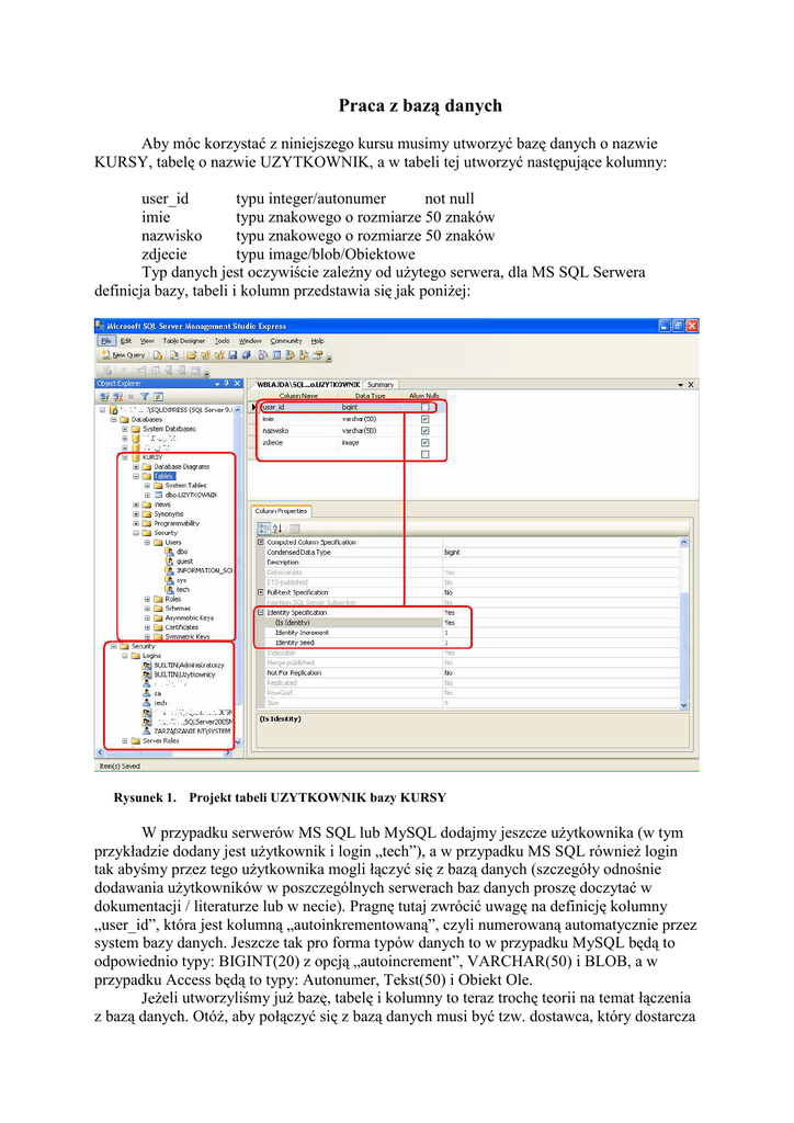 Rysunek 1. Projekt tabeli UZYTKOWNIK bazy KURSY