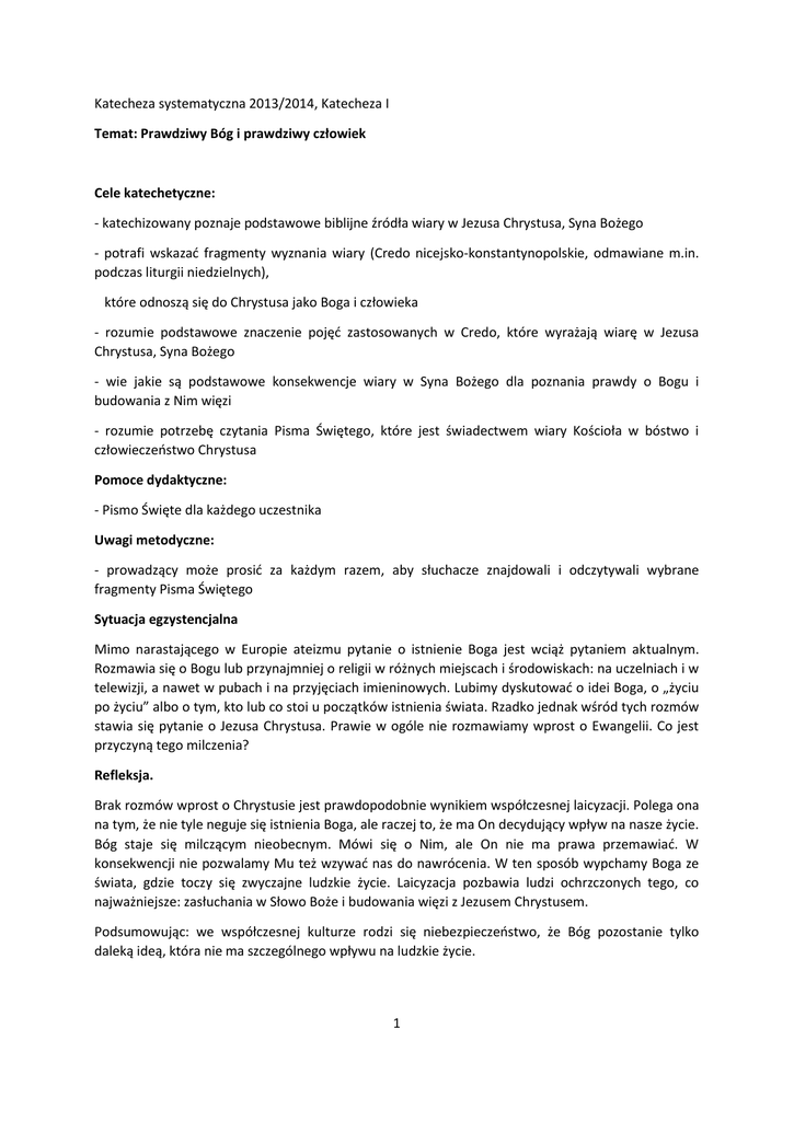KATECHEZA 1: Prawdziwy Bóg i prawdziwy człowiek