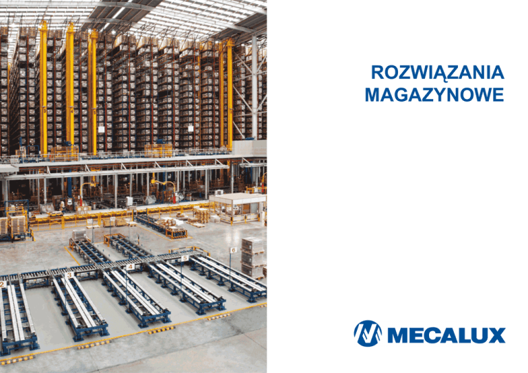 ROZWIĄZANIA MAGAZYNOWE +48 32 331 69 66 SPIS TREŚCI Technologia Gama produktów Sieć handlowa Ośrodki badań i rozwoju Ośrodki produkcyjne Referencje 2 +48 32 331 69 66 Technologia Gama produktów Sieć handlowa Ośrodki badań i rozwoju Ośrodki produkcyjne Referencje 3 +48 32 331 69 66 TECHNOLOGIA Mecalux stawia na najbardziej zaawansowane technologie przemysłowe oraz na ciągły rozwój nowych produktów. Innowacje zrealizowane w roku 2009: Technologie stosowane podczas projektowania Technologie stosowane podczas wytwarzania produktów Nowe produkty 4 +48 32 331 69 66 TECHNOLOGIA TECHNOLOGIE STOSOWANE PODCZAS PROJEKTOWANIA Projektowanie Zastosowanie narzędzi projektowania w trzech wymiarach Język projektowania oprogramowania sterującego (Galileo) Zarządzanie plikami za pomocą PDM. Zastosowanie narzędzi projektowania obwodów elektronicznych Narzędzia inŜynierii sterowania. 5 +48 32 331 69 66 TECHNOLOGIA Analiza i badania Mecalux stosuje najbardziej zaawansowane programy na rynku do obliczania i wdraŜania systemów magazynowych. Narzędzia analityczne oparte na metodzie elementów skończonych (Cosmos i Ansys®). Testy na rzeczywistych próbkach we współpracy z uniwersytetami. Testy zmierzające do optymalizacji energii za pomocą oscyloskopu. Narzędzia zwiększające wydajność w procesach inŜynieryjnych i produkcyjnych. 6 +48 32 331 69 66 TECHNOLOGIA Ansys® 11.0. Program oparty na metodzie elementów skończonych, wykorzystywany do modelowania i obliczania konstrukcji w róŜnych stanach obciąŜenia, zarówno statycznych jak i dynamicznych. Symulacja zachowania w przyspieszeniach sejsmicznych. Symulacja i obliczanie konstrukcji głównych oraz elementów dodatkowych układnic, jak równieŜ róŜne symulacje zachowania elementów mechanicznych. Stosowany głównie jako narzędzie badań i rozwoju. Robot Structural Analysis Professional (RSA) Oprogramowanie do obliczania struktur oparte na metodzie elementów skończonych, zarówno w dwóch, jak i trzech wymiarach. Dotyczy dowolnego elementu, zasadniczo stali i betonu. UmoŜliwia wykonanie analizy liniowej, nieliniowej, statycznej i dynamicznej. Łatwe w uŜyciu, stosowane przez inŜynierów do obliczania projektów. 7 +48 32 331 69 66 TECHNOLOGIA TECHNOLOGIE STOSOWANE PODCZAS WYTWARZANIA PRODUKTÓW Magistrala komunikacyjna Fieldbus Komunikacja w instalacjach poprzez magistralę. Zintegrowane bezpieczeństwo w szynie danych. Ethernet Profibus ASI / CAN Sterowanie napędów za pomocą falowników Optymalizacja momentu silnika, prędkości i pozycjonowania. Sterowanie bezpiecznym zatrzymaniem przy pomocy zaawansowanych technologicznie urządzeń elektronicznych. Inteligentne sterowanie hamulcami silników. Technologia wykonana przy udziale oprogramowania systemowego, zaprojektowana specjalnie dla firmy Mecalux. 8 +48 32 331 69 66 TECHNOLOGIA NOWE PRODUKTY System Radio-Shuttle Nowy produkt wytwarzany specjalnie dla firmy Mecalux Zwiększenie zakresu temperatur pracy: od +45 ºC do -30 ºC. Sterowanie radiowe. Zabezpieczenia spełniające normę WE. Maksymalna nośność 1500 kg. 9 +48 32 331 69 66 TECHNOLOGIA Układnice paletowe Układnica MT (2g): Dostosowana do norm 2006/WE i oceny ryzyka EN ISO 13849-1. Kolumny są łączone, aby ułatwić transport i montaŜ. Zmniejszenie wagi o 10%. Zmniejszenie ceny modułu odzyskiwania energii o 50%. Zmniejszenie wysokości w silosach o podwójnej głębokości składowania (nowe widły teleskopowe). Zwiększenie wysokości maksymalnej do 45 m oraz nośności do 1500 kg. Większa prędkość jazdy i podnoszenia. 10 +48 32 331 69 66 TECHNOLOGIA Lepsze wykrywanie optyczne belek nośnych ze wskazaniem przeciąŜenia. Wprowadzenie analogowych, laserowych urządzeń pomiarowych do kontroli połoŜenia palet. Wbudowany ogranicznik prędkości podnoszenia i hamulec bezpieczeństwa. Nowe, przykręcane prowadnice systemu podnoszenia, ułatwiające montaŜ i konserwację. Wbudowany system elektroniczny bezpiecznego i potwierdzonego zatrzymania. Nowy moduł hamulcowy z zasilaniem niezaleŜnym od szynoprzewodu zasilającego. 11 +48 32 331 69 66 TECHNOLOGIA Układnica dwukolumnowa MTB Zwiększenie gamy układnic dwukolumnowych z większą nośnością (do 2000 kg). Zwiększenie wydajności poprzez równoczesną manipulację dwoma paletami. MoŜliwość konfiguracji z modułami odzyskiwania energii w celu zmniejszenia zuŜycia mocy. Nowe, niespawane prowadnice systemu podnoszenia, ułatwiające montaŜ i konserwację. Nowe łączone kolumny, zwiększające wydajność transportu i podnoszenia. 12 +48 32 331 69 66 TECHNOLOGIA Nowy podnośnik paletowy Nowa modułowa konstrukcja. Konstrukcja lŜejsza o 40%. Zmniejszenie kosztów o 50%. Zwiększenie zakresu temperatur pracy od +40 ºC do -30 ºC. Prędkość podnoszenia: 60 m/min. MoŜliwość zainstalowania przenośnika rolkowego lub łańcuchowego. Maksymalna nośność 1500 kg. Wbudowany system ograniczenia maksymalnej nośności. Lepsza dostępność i bezpieczeństwo konserwacji. Prosta konstrukcja zespołu napędowego, dzięki wyeliminowaniu połączenia mechanicznego. 13 +48 32 331 69 66 TECHNOLOGIA Przenośnik paletowy Optymalizacja profili metalowych: zmniejszenie wagi i zwiększenie sztywności. Większa modułowość i łatwość montaŜu. Ulepszenie sterowania elektronicznego (magistrala komunikacyjna). Składane odbojniki w ruchu po prostej. Rolki/ łańcuchy pozycjonują palety i zapobiegają ich obracaniu się. Nowa wysokość transportu. Palety nie są naraŜone na uszkodzenia dzięki opcji prowadnic wielośrednicowych. Jednoładunkowe/ dwuładunkowe wózki wahadłowe z szerokim zakresem temperatur: od +45 ºC do -30 ºC. MoŜliwość łatwej konfiguracji z pojedynczymi / podwójnymi przenośnikami rolkowymi lub łańcuchowymi. 14 +48 32 331 69 66 TECHNOLOGIA Nowy paletyzator/ depaletyzator Nowa modułowa konstrukcja. Napęd elektromechaniczny zamiast pneumatycznego. Kompaktowa obudowa, umoŜliwiająca wdroŜenie w dowolnej ins