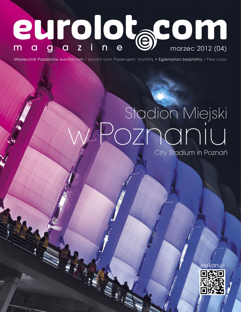 m a g a z i n e marzec 2012 (04) Miesięcznik Pasażerów eurolot.com / eurolot.com Passengers’ monthly • Egzemplarz bezpłatny / Free copy Stadion Miejski w Poznaniu City Stadium in Poznań zeskanuj! Freemont. Cały świat w jednym samochodzie. przeglądy co 30 000 km • 32 konfiguracje siedzeń • 5-7 miejsc siedzących • spalanie 6,4 l/100 km (cykl mieszany) • silnik Diesla 170 KM • 2 Prezentowany samochód jest jedynie ilustracją. Prezentowany kolor karoserii nie jest dostępny w aktualnej ofercie. Emisja CO2 dla silnika Diesla 170 KM wynosi 169 g/km. Szczegóły w salonach. www.fiat.pl Start powitanie / welcome Szanowni Państwo, Ladies and gentlemen, miło mi powitać Państwa na pokładzie naszego samolotu. I am pleased to welcome you on board our aircraft. Zwykle piszę te słowa w chwili, kiedy Magazyn jest już gotowy, dzięki czemu mogę zwrócić Państwa uwagę na jego treść. I usually write these words at a time when the Magazine is ready, so I draw your attention to its contents. Dziś jednak, dzięki temu, że mój tekst trafia do druku jako ostatni, mam okazję, by podzielić się z Państwem informacją z ostatniej chwili – Eurolot zamawia nowe samoloty! Today however, since my text goes to print as the last one, I have the opportunity to share the information from the very last moment with you – Eurolot is ordering new planes! Dokładnie analizowaliśmy możliwości, jakie oferują różne typy samolotów turbośmigłowych. Sprawdzaliśmy ich koszty eksploatacji na różnych trasach, negocjowaliśmy ceny. Przyszła pora na decyzję – naszym nowym samolotem będzie najnowszy produkt kanadyjskiego Bombardiera – Dash Q400 NextGen. We have carefully analysed the possibilities offered by different types of turboprop aircraft. We have checked their operating costs on different routes, negotiated the prices. Finally, it has been time to decide – our new aircraft will be the latest product of Canadian Bombardier – Dash Q400 NextGen. To supernowoczesny turbośmigłowiec, przez wielu ekspertów nazywany turbo-jetem. Wynika to z porównywalnych do samolotu odrzutowego osiągów przy zachowaniu ekonomiki parametrów eksploatacyjnych samolotu turbośmigłowego. Dash Q400 NextGen ma również szereg rozwiązań wpływających na komfort podróży, co przecież jest szczególnie ważne dla Państwa – naszych Pasażerów. Producentowi udało się znacznie obniżyć poziom hałasu w kabinie podczas lotu, samolot ma też możliwość włączania klimatyzacji podczas postoju. It is an ultra modern turboprop airliner, by many experts called a turbo–jet. This results from the aircraft performance that is comparable to of a jet plane while observing the economics of operating parameters of a propjet. Dash Q400 NextGen has also a number of solutions affecting the comfort of air travel, which is, after all, especially important for you – our Passengers. The producer significantly managed to reduce the noise in the cabin during flight, the aircraft has also a possibility to switch on air-conditioning on the standstill. Szczegółowy opis naszych nowych samolotów znajdą Państwo w kolejnym, kwietniowym numerze Magazynu. A detailed description of our new planes can be found in the next, April edition of the Magazine. Bombardiery będą fabrycznie nowe, a Eurolot dołączy do takich renomowanych linii eksploatujących dziś ten typ samolotu jak japońskie ANA – All Nippon Airways, amerykański Horizon Air, a w Europie – Air Berlin, Austrian Arrows, Lufthansa Regional i brytyjski Flybe. Bombardier planes will be brand new, and Eurolot will join such well-known lines, which operate this type of plane today as Japanese ANA – All Nippon Airways, American Horizon Air, and in Europe Air Berlin, Austrian Arrows, Lufthansa Regional and British Flybe. Nowe samoloty pojawią się w barwach eurolot.com jeszcze w pierwszej połowie roku i będą je Państwo mogli spotkać zarówno na naszych własnych rejsach, jak i na połączeniach, które realizujemy dla PLL LOT. Wymiana floty potrwa ok. 12 miesięcy. The new planes will fly in the colours of eurolot.com as soon as in the first half of the year and you will be able to meet them both during our own flights, and on the routes we operate for PLL LOT. The replacement of the fleet is going to take approximately 12 months. Mam nadzieję, że podróżowanie naszymi nowymi samolotami będzie dla Państwa ekscytującym podniebnym doświadczeniem. I hope that travelling by our new airliners will be an exciting sky-high experience. Życząc miłej podróży, zachęcam oczywiście do lektury naszego Magazynu. Of course, wishing you a pleasant journey, I would like to invite you to read our Magazine. Mariusz Dąbrowski Mariusz Dąbrowski Prezes Zarządu President & CEO eurolot.com magazine Wydawca / Publisher: Reklama / Advertising: Miesięcznik Pasażerów eurolot.com eurolot.com Passengers’ monthly V5group ul. Śląska 4, 60-614 Poznań www.v5group.pl [email protected] [email protected] tel.: + 48 22 629 57 75 mobile: 508 016 838 Biuro Zarządu / Management office: e-mail: [email protected] tel.: + 48 22 606 7879 fax: + 48 22 606 6159 Redaktor naczelny: Tomasz Hilbert [email protected] Redakcja zastrzega sobie prawo do skrótu i opracowania redakcyjnego tekstów nadesłanych do magazynu. The editorial staff reserves the right to reduce and edit the texts sent to the magazine. Okładka / Cover: Fot. Grzegorz Nelec 3 Start spis treści / table of contents START DESTYNACJA DESTINATION ODERWIJ SIĘ TAKE OFF KLASA BIZNES BUSINESS CLASS KULTURALNE LĄDOWANIE CULTURAL LANDING WITAJ W DOMU! WELCOME HOME! KOKPIT COCKPIT 3 Powitanie / Welcome Eurolot news Bagażowe nowości na marzec Baggage novelties for March 6 8 Cztery wspaniałe! Polskie stadiony Euro 2012 The great four! Polish Euro 2012 stadiums Pierwszy na Euro. Stadion Miejski w Poznaniu The first for the UEFA Euro. City Stadium in Poznań Małopolska Trasa UNESCO Małopolska
