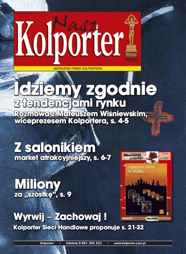LUTY 2011 (166) Kolporter Lider Polskiego Biznesu BEZPŁATNE PISMO KOLPORTERA Idziemy zgodnie z tendencjami rynku Rozmowa z Mateuszem Wiśniewskim, wiceprezesem Kolportera, s. 4-5 Z salonikiem market atrakcyjniejszy, s. 6-7 Miliony za „szóstkê”, s. 9 Wyrwij – Zachowaj ! Kolporter Sieci Handlowe proponuje s. 21-32 Kolporter • infolinia 0 801 205 555 • www.kolporter.com.pl LUTY 2011 (166) Nasza rozmowa Idziemy zgodnie z tendencjami rynku Kolporter rozwija asortyment pozaprasowy w salonikach spis treści Rynek FMCG Z salonikiem market atrakcyjniejszy Firma Inquiry przeprowadziła badanie na zlecenie Kolportera Aktualności Najlepsi z najlepszych Nowy konkurs Departamentu Sieci Własnej Kolportera Miliony za „szóstkę” Główna wygrana w Lotto padła w saloniku Kolportera w Sandomierzu W projekcie okładki wykorzystano fragment obrazu Marka Wawry „Croix Tors”. Zgodnie z tendencjami rynku – Oprócz prasy i papierosów coraz większym popytem w salonikach cieszą się tak zwane artykuły impulsowe – mówi w rozmowie z „NK” Mateusz Wiśniewski, wiceprezes Kolportera Sieci Handlowe. – Chodzi np. o batoniki, napoje czy gumy do żucia, ale też baterie i zestawy startowe sieci komórkowych. Szczególnie dużo obiecujemy sobie po usługach i ofercie elektronicznej, czyli doładowaniach telefonów, płatnościach rachunków, grach losowych. s. 4-5 Z salonikiem market atrakcyjniejszy Na podstawie wyników badania widzimy, że obecność saloników podnosi konkurencyjność danego punktu jako miejsca zakupu prasy – także w odniesieniu do supermarketu – czytamy w raporcie firmy badawczej Inquiry. s. 6-7 Miliony za „szóstkę” Kolporter ma w planach podpisywanie umów na prowadzenie kolektury w każdym nowo otwieranym saloniku prasowym. s. 9 Ludzie Klienci chcą także porozmawiać Najlepsi sprzedawcy prasy z województwa lubuskiego Człowiek dobrego serca Kopaniowie wychowali już dziewiętnaścioro dzieci Cenię honor i kulturę Najlepszy partner Kolportera prowadzący salonik prasowy Handel Święto zakochanych i zakupów Niektóre sklepy były gotowe do Walentynek trzy tygodnie wcześniej Złodziej buszujący w sklepie Najlepiej polegać na własnej czujności Rynek prasowy Bioterapia na łamach Wydawnictwo Ambrozja: „Uzdrawiacz”, „Poradnik Uzdrawiacza” i inne… A to ciekawe Leki OTC Na gardło i lepszą odporność Kolporter rozszerza ofertę leków OTC Superoferta – skorzystaj! Kolporter Sieci Handlowe proponuje s. 4-5 s. 6-7 s. 8 s. 9 s. 10-11 s. 13 s. 15 s. 17 s. 33 s. 18-19 s. 36 s. 20 s. 21-32 Prawnik radzi Odszkodowanie dla pracodawcy Czym skutkuje nieuzasadnione rozwiązanie umowy o pracę przez pracownika s. 35 Psycholog radzi W poszukiwaniu idealnego sprzedawcy Czy każdy może być handlowcem? s. 38-39 Rozrywka Krzyżówka Rozrywka Krzyżówka Technopol s. 40-41 s. 44-45 Kolporter w prasie i Internecie s. 42 Nowości w ofercie Kolportera s. 47-49 WYDAWCA – Kolporter Holding; REDAKTOR NACZELNY – Grzegorz Kozera; REDAGUJĄ: Dariusz Materek, Joanna Szczepanik; KONTAKT W SPRAWIE REKLAMY – Karina Zawadzka, tel. 515 220 002; OPRACOWANIE KOMPUTEROWE: Zakład Marketingu Kolportera Holding, Kielce, ul.Zagnańska 61,tel. 41 367 80 34; DRUK: Drukarnia DROGOWIEC-PL; ADRES REDAKCJI: „Nasz Kolporter”, 25-528 Kielce, ul. Zagnańska 61, tel. 41 367 80 31; RADA PROGRAMOWA: Mateusz Wiśniewski, Grzegorz Fibakiewicz, Wiesław Tkaczuk, Jarosław Ambroziak, Grzegorz Maciągowski. NAKŁAD – 27 470 egzemplarzy. Redakcja nie bierze odpowiedzialności za treść reklam i nie zwraca nie zamówionych materiałów. NASZA ROZMOWA Kolporter rozwija asortyment pozaprasowy w salonikach Idziemy zgodnie z tendencjami rynku Rozmowa z Mateuszem Wiśniewskim, wiceprezesem Kolportera Sieci Handlowe, odpowiedzialnym za Departament Sieci W³asnej. „Nasz Kolporter”: Załóżmy, że jestem zainteresowany otworzeniem saloniku prasowego, ale jeszcze się waham. Jak zachęciłby mnie Pan do podjęcia współpracy z Kolporterem? Mateusz Wiśniewski: – Powiedziałbym Panu, że warto z nami współpracować z kilku powodów. Przede wszystkim otwierając salonik i rozpoczynając współpracę z Kolporterem wchodzi się do stabilnej organizacji, z dużym doświadczeniem, mającej solidną i pewną pozycję na r ynku, a to wydatnie ogranicza ryzyko takiej działalności. Plusem jest też, że aby prowadzić salonik prasowy, nie trzeba posiadać doświadczenia handlowego. Tego typu umiejętności absolutnie nie są przez nas wymagane, choć oczywiście, jeśli ktoś je ma, to tym lepiej dla niego. Ale w tym przypadku najważniejszą wiedzę o prowadzeniu saloniku my przekazujemy partnerowi. Zapewniamy też towar i wyposażenie lokalu, eliminujemy ryzyko związane z tym przedsięwzięciem. Partner wnosi tylko i aż chęć do pracy, pozytywne nastawienie do klienta. Jest jeszcze jeden warunek: należy zarejestrować samodzielną działalność gospodarczą. Saloniki prasowe, już choćby nazwą, kojarzą się ze sprzedażą prasy, ale przecież jest też w nich asortyment pozaprasowy. Kolporter będzie go rozwijać? – Robimy to systematycznie, trudno bowiem, żebyśmy płynęli pod prąd tendencji rynkowych. Prasa to ciągle ważna kategoria, ale inne stają się równie istotne. Rośnie sprzedaż papierosów w salonikach, co zważywszy na trendy rynkowe i zmiany w przepisach prawnych, jest fenomenem. Oprócz papierosów coraz większym 4 NASZ KOLPORTER LUTY 2011 (166) popytem cieszą się tak zwane artykuły impulsowe. Chodzi np. o batoniki, napoje czy gumy do żucia, ale też baterie i zestawy startowe sieci komórkowych. Szczególnie dużo obiecujemy sobie po usługach i ofercie elektronicznej, czyli doładowaniach telefonów, płatnościach rachunków, grach losowych. Chcemy poszerzyć ofertę sprzedaży biletów na imprezy kulturalne i sportowe. Jak na tle konkurencji plasują się saloniki Kolportera? – Mówimy o segmencie rynku, do którego należą kioski samoob