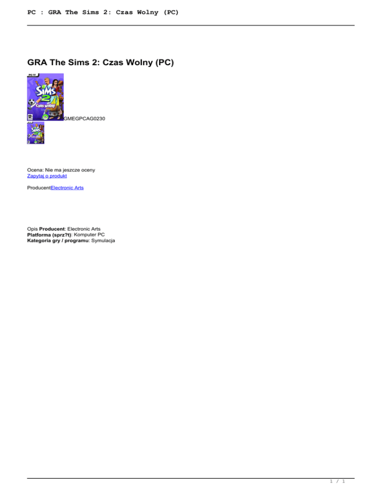 PC : GRA The Sims 2: Czas Wolny (PC)