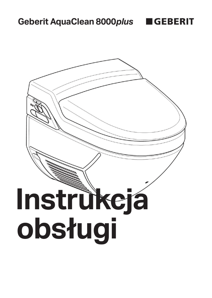 Geberit AquaClean 8000plus Instrukcja obsługi Instrukcja obsługi Geberit AquaClean 8000plus Dla czystego komfortu ........................................................................................... 4 Zysk dla zdrowia i dobrego samopoczucia ..................................................................... Prosta obsługa ................................................................................................................ Mają Państwo pytania dotyczące toalety Geberit AquaClean? ...................................... Rejestracja karty gwarancyjnej ....................................................................................... Środowisko naturalne ..................................................................................................... 4 4 4 4 4 Istotne wskazówki ................................................................................................. 5 Użytkowanie zgodne z przeznaczeniem......................................................................... Deklaracja zgodności...................................................................................................... Dla Państwa bezpieczeństwa ......................................................................................... Eksploatacja.................................................................................................................... Objaśnienie symboli........................................................................................................ 5 5 5 5 5 Obsługa Geberit AquaClean 8000plus .................................................................. 6 Przegląd elementów obsługowych.................................................................................. 6 Panel obsługi .................................................................................................................. 6 Pilot zdalnej obsługi Geberit AquaClean 8000plus ......................................................... 7 Funkcje dodatkowe pilota zdalnej obsługi Geberit AquaClean 8000plus ....................... 8 Wbudowany panel obsługi ............................................................................................ 10 Korzystanie z toalety Geberit AquaClean 8000plus....................................................... 11 Korzystanie z perlatora .................................................................................................. 12 Ważne informacje ................................................................................................ 13 Osłona zabezpieczająca ............................................................................................... 13 Przechowywanie pilota zdalnej obsługi......................................................................... 13 System automatycznego opuszczania deski i pokrywy deski sedesowej..................... 13 Indywidualne ustawienia użytkownika ................................................................. 14 Zapamiętywanie profili użytkowników ............................................................................ 14 Ustawienia podstawowe ................................................................................................ 15 Przywracanie ustawienia fabrycznego........................................................................... 15 Pielęgnacja i czyszczenie .................................................................................... 16 Wskazówki dotyczące pielęgnacji................................................................................. 16 Komponenty.................................................................................................................. 16 Dozwolone środki i urządzenia czyszczące.................................................................. 17 Niedozwolone środki i urządzenia czyszczące ............................................................. 18 Porady........................................................................................................................... 19 Czyszczenie deski i pokrywy sedesowej oraz części obudowy ..................................... 20 Czyszczenie zawiasów, osłony, ramienia suszarki i ramienia natryskowego ................ 20 Czyszczenie miski ustępowej ........................................................................................ 21 Usuwanie usterek ................................................................................................ 22 Usterki podczas eksploatacji......................................................................................... 22 Wymiana baterii w pilocie zdalnej obsługi...................................................................... 24 Wymiana filtra z węglem aktywnym ............................................................................... 25 Napełnianie zbiornika ze środkiem do dezynfekcji dysz ................................................ 26 Wymiana dyszy natryskowej i czyszczenie otworu w ramieniu natryskowym ............... 27 Wymiana ramienia suszarki i czyszczenie otworu w ramieniu suszarki ........................ 28 Montaż i demontaż deski i pokrywy sedesowej ............................................................. 29 Dane techniczne .................................................................................................. 30 Gwarancja dla odbiorcy końcowego .................................................................... 31 3 Instrukcja obsługi Geberit AquaClean 8000plus Dla czystego komfortu Geberit AquaClean 8000plus jest toaletą, która nawiązuje do źródła świeżości i czystości: wody. Indywidualny strumień wody oczyszcza obszar intymny delikatnie i przyjemnie. Użytkowanie jest proste, lecz skuteczne. Do osuszania można użyć papieru toaletowego, ręcznika lub wbudowanej suszarki. Zysk dla zdrowia i dobrego samopoczucia Dodatkowe funkcje, takie jak natrysk oscylacyjny, perlator do naturalnej higieny intym