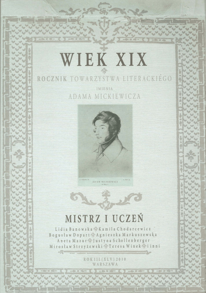 Wiek XIX. Rocznik Towarzystwa Literackiego im. A. Mickiewicza, Rok III (XLV) 2010 ARTYKU£Y I ROZPRAWY Teresa Winek JAKIEGO PANA TADEUSZA CZYTANO W XIX WIEKU? Historyków literatury interesowa³o g³ównie zagadnienie, jak czytano Pana Tadeusza, a dwie najwa¿niejsze ksi¹¿ki zbieraj¹ce dorobek w tym zakresie to studium monograficzne Stanis³awa Pigonia Pan Tadeusz. Wzrost, wielkoæ i s³awa1, referuj¹ce zwiêle dzieje pierwszych stu lat s³awy poematu, oraz praca zbiorowa: Pan Tadeusz i jego dziedzictwo. Recepcja2, bêd¹ca plonem konferencji, któr¹ jedenacie lat temu zorganizowali polonici Uniwersytetu Jagielloñskiego. Odpowied na tytu³owe pytanie pojawia³a siê tak¿e w innych publikacjach, choæ zawsze by³y to ujêcia cz¹stkowe, sygnalizuj¹ce jedynie zjawiska, jakie nale¿a³oby obj¹æ badawczym rozpoznaniem3. Dzieje recepcji epopei narodowej pokazuj¹ bo1 S. Pigoñ, Pan Tadeusz. Wzrost, wielkoæ i s³awa. Studium literackie, Kraków 2002; wyd. 1: Warszawa 1934. 2 Pan Tadeusz i jego dziedzictwo. Recepcja, red. B. Dopart, Kraków 2006. 3 Przyk³adowo z literatury najnowszej mo¿na przywo³aæ: B. Dopart, Czem by³ Pan Tadeusz dla Polaków w dobie niewoli, w: tego¿, W wiecie Pana Tadeusza, Kraków 1999; T. Winek, Miêdzy jubileuszami. Pan Tadeusz 1884-1898, w: Adam Mickiewicz. Dwa wieki kultury polskiej, red. K. Maci¹g i M. Stanisz, Rzeszów 2007, s. 100-112. Z wczeniejszych opracowañ koniecznie trzeba przypomnieæ prace A. Semkowicza i T. Sygi, stanowi¹ce kontekst dla poni¿szych ustaleñ. W 1926 roku Semkowicz wyda³ legendê bibliofilsk¹, zatytu³owan¹ Wydania dzie³ Adama Mickiewicza w ci¹gu stulecia. O wydaniach oryginalnych og³oszonych za ¿ycia poety. 1822-1855 (Lwów, Ksi¹¿nica Atlas TNSW), tytu³owego stulecia nigdy nie opracowa³ do koñca. Zagadnienie podj¹³ po trzydziestu latach Syga (Te ksiêgi proste. Dzieje pierwszych polskich wydañ ksi¹¿ek Mickiewicza, Warszawa 1956), dokumentuj¹c je materia³ami z odnalezionych róde³ i uzupe³niaj¹c nowymi tematami. Interesowa³y go jednak równie¿ tylko pierwodruki opublikowane przez poetê. Dalsze dzieje recepcji wydawniczej Mickiewicza nie znalaz³y swego badacza, nie zosta³y doprowadzone do koñca 6 wiem zakres zjawisk niemal nieogarniony; z jednej strony, zagadnienia zwi¹zane z wrastaniem tego dzie³a w wiadomoæ spo³eczn¹, literack¹ i szerzej: artystyczn¹ kolejnych pokoleñ, z drugiej strony egzemplifikuj¹ problemy typowe dla recepcji wydawniczej literatury polskiej od po³owy XIX wieku a¿ do czasów najnowszych. Niniejszy artyku³ tak¿e jest tylko wstêpnym zasygnalizowaniem, nie za wyczerpuj¹cym omówieniem tematu, przypomina o potrzebie jego dalszego opracowywania. Z tego te¿ powodu przywo³ane zostan¹ jedynie nieliczne sporód prawie szeædziesiêciu wydañ Pana Tadeusza, jakie ukaza³y siê w XIX wieku. Ca³oæ dziejów wydawniczych epopei narodowej stanowi bowiem materia³ na pokan¹ ksi¹¿kê. Ze wszystkich dzie³ Mickiewicza to w³anie Pan Tadeusz ma historiê najbogatsz¹ zarówno jego dzieje wydawnicze, proces bogatej i z³o¿onej recepcji, a tak¿e stanowi¹cych jej czêæ interpretacji badawczych sk³adaj¹ siê na d³ugi ¿ywot, niemal nieprzerwan¹ obecnoæ w wiadomoci narodowej i kulturalnej spo³eczeñstwa oraz istotne ród³o inspiracji twórczej. Zagadnienie: z jakim Panem Tadeuszem obcowa³y kolejne pokolenia jego czytelników i w pewne mierze: u¿ytkowników i twórców kultury, okazuje siê wiêc podstawowe nie tylko dla badañ nad kultur¹ literack¹ XIX wieku, ale i dla wielu tematów historycznoliterackich. Wydania autorskie Problemy genezy Pana Tadeusza i czynnoci twórczych Mickiewicza by³y ¿ywo dyskutowane od lat siedemdziesi¹tych XIX wieku; w sporze historyków literatury fakty z biografii poety ³¹czone by³y z legend¹, jaka towarzyszy³a rosn¹cemu przekonaniu o epopeicznym charakterze poematu; opisali je najpe³niej: Roman Pilat, Stanis³aw Pigoñ, Juliusz Kleiner i Konrad Górski4. Oto najwa¿niejsze fakty, istotne dla podjêtego przez nas zagadnienia. Pewna jest data ukoñczenia poematu, poniewa¿ 14 lutego 1834 roku Mickiewicz napisa³ nawet na poziomie rejestracji bibliograficznej, bowiem podejmowane wielokrotnie bibliografie Mickiewiczowskie nie zaowocowa³y odpowiednim tomem Nowego Korbuta, temat pozostaje wiêc nadal aktualny, a nawet istotny dla badañ historycznoliterackich. Jakiekolwiek bowiem prace o recepcji dzie³ Mickiewicza oraz ich interpretacje nie mog¹ byæ budowane bez solidnych fundamentów (to okrelenie Pigonia nie straci³o nic ze swej wa¿noci) dokumentacyjnych. 4 R. Pilat [wstêp], w: A. Mickiewicz, Dzie³a, Wydanie Towarzystwa Literackiego im. Adama Mickiewicza, t. 5: Pan Tadeusz, Lwów 1910; S. Pigoñ, Wstêp, w: A. Mickiewicz, Pan Tadeusz, oprac. S. Pigoñ, Kraków 1925 i nast.; J. Kleiner, Mickiewicz, t. 2: Dzieje Konrada. Czêæ druga, wyd. 2 popraw., Lublin 1998; K. Górski, Wstêp, w: A. Mickiewicz, Pan Tadeusz, oprac. K. Górski, Wroc³aw 1969. 7 w licie do Antoniego Odyñca: wiêc skoñczy³em wczora w³anie. Pieni ogromnych dwanacie!5. Ju¿ wczeniej podjêto przygotowania do druku pierwszego tomu poematu, bo Pan Tadeusz zosta³ zaplanowany w³anie na dwa tomy. Do czerwca 1834 roku poeta z pomoc¹ przyjació³ my³ i czesa³ swe dzie³o, czyli nanosi³ poprawki, robi³ uzupe³nienia, czyta³ korekty. Wydawc¹ by³ jak wiemy Aleksander Je³owicki (zas³u¿ony dla literatury polskich emigrantów), wspomaga³ go Eustachy Januszkiewicz, póniejszy wspó³w³aciciel Ksiêgarni Polskiej w Pary¿u (przyjaciel Mickiewicza i jego dzieci, opiekun rodziny, a po mierci poety tak¿e jego spucizny twórczej). Do grona wspieraj¹cego poetê w pracy nad poematem nale¿eli ponadto: wspomniany ju¿ Domeyko, Bogdan Jañski, Stefan Witwicki. Dzie³o by³o gotowe do wyjcia w wiat pod koniec czerwca 1834 roku, ale wydawca przetrzyma³ je w drukarni, wysy³aj¹c sobie tylko wiadomymi drogami paczki z woluminami do kraju. Wiemy o tym z list