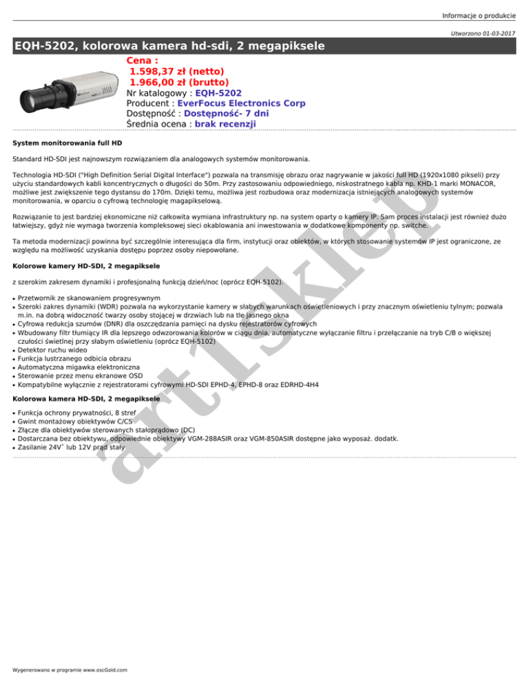 EQH-5202, kolorowa kamera hd-sdi, 2 megapiksele