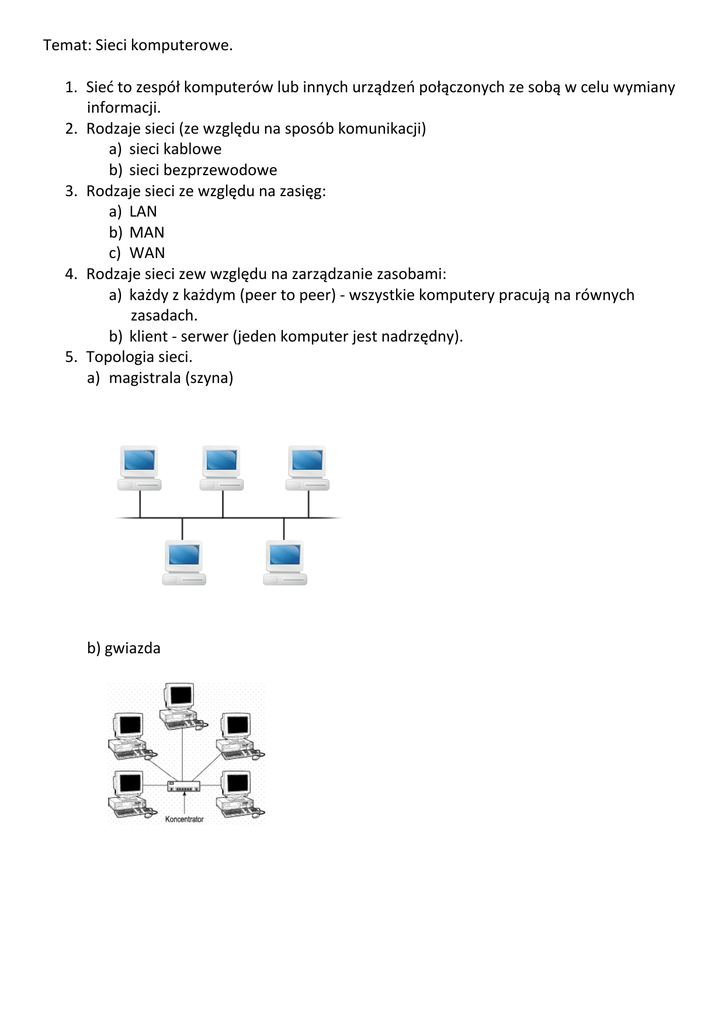 Temat: Sieci komputerowe. 1. Sieć to zespół komputerów lub innych
