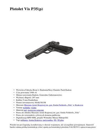 Pistolet Vis P35(p) - Wirtualne Muzea Małopolski