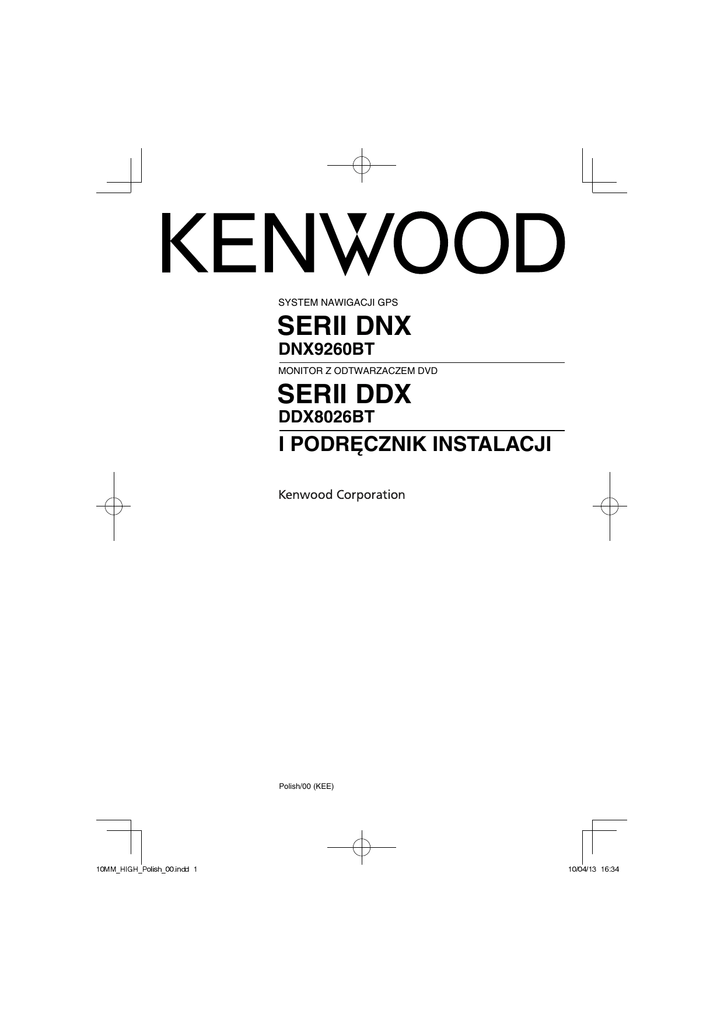 SYSTEM NAWIGACJI GPS SERII DNX DNX9260BT MONITOR Z ODTWARZACZEM DVD SERII DDX DDX8026BT I PODRĘCZNIK INSTALACJI Polish/00 (KEE) Wyposażenie 1 Procedura instalacji 9 ..........1 2 ..........1 0 ..........1 3 Tylko DNX9260BT ..........1 ! ..........1 4 ..........1 5 ..........2 6 ..........1 1. Aby zapobiec zwarciom, wyjąć kluczyki samochodu ze stacyjki i odłączyć końcówkę - akumulatora. 2. Odpowiednio podłączyć przewody wejścia i wyjścia dla każdego urządzenia. 3. Podłączyć przewód do zespołu przewodów. 4. Podłączyć złącze B na zespole przewodów do złącza głośnika w swoim pojeździe. 5. Podłączyć złącze A na zespole przewodów do zewnętrznego zasilania w pojeździe 6. Podłączyć złącze zespołu przewodów do urządzenia. 7. Zainstalować urządzenie w swoim samochodzie. 8. Ponownie podłączyć - końcówkę akumulatora. 9. Wcisnąć przycisk reset. 10. Dokonać wstępnego ustawienia. (Patrz podręcznik obsługi.) 2 OSTRZEŻENIE • Połączenie przewodu zapłonu (czerwony) i przewodu akumulatora (żółty) do podwozia samochodu (masy) może spowodować zwarcie i pożar. Zawsze należy łączyć te przewody ze źródłem zasilania poprzez skrzynkę bezpieczników. • Nie odłączać bezpiecznika od przewodu zapłonu (czerwony) i przewodu akumulatora (żółty). Zasilanie musi być połączone do przewodów poprzez bezpiecznik. Uzyskanie sygnału GPS ..........1 7 Tylko DNX9260BT ..........1 8 Tylko DNX9260BT ..........1 2 Przy pierwszym włączeniu DNX9260BT, trzeba poczekać, aż system otrzyma sygnał satelitarny po raz pierwszy. Może to trwać kilka minut. Aby szybko uzyskać sygnał, pojazd powinien stać na wolnym powietrzu, na otwartej przestrzeni, z dala od wysokich budynków i drzew. Po pierwszym połączeniu urządzenia z satelitami, przy każdym następnym razie połączenie będzie się odbywało szybko. O panelu przednim Przy wyjmowaniu produktu z pudełka lub podczas instalacji, przedni panel może Serii DNX / Serii DDX znajdować się pod kątem pokazanym na (Rys. 1). Ma to związek z właściwościami mechanizmu, w który wyposażony jest produkt. Jeśli program aktywowany podczas pierwszego uruchomienia produktu działa poprawnie, przedni panel automatycznie ustawi się w pozycji (początkowy kąt ustawienia) pokazanej na (Rys. 2). (Rys. 1) (Rys. 2) Po instalacji Po instalacji należy dokonać wstępnego ustawienia przy użyciu podręcznika obsługi. ¤ • Mocowanie i podłączenie przewodów produktu wymaga umiejętności i doświadczenia. Ze względów bezpieczeństwa, należy powierzyć te prace profesjonalistom. • Należy pamiętać o uziemieniu urządzenia do ujemnego zasilacza o mocy 12V DC. • Nie instaluj urządzenia w miejscu narażonym na bezpośrednie działanie promieni słonecznych lub nadmierne ciepło lub wilgoć. Należy unikać również zbyt zakurzonych miejsc lub takich, gdzie istnieje możliwość ochlapania wodą. • Nie używaj własnych śrub Stosować jedynie dołączone śruby W razie użycia niewłaściwych śrub, urządzenie może ulec uszkodzeniu. • Jeśli zasilanie nie jest włączone (wyświetlane jest “PROTECT”), przewód głośnika może mieć zwarcie lub dotykać podwozia pojazdu, z powodu czego mogła zostać włączona funkcja ochrony. Dlatego należy sprawdzić przewód głośnika. • Jeżeli układ zapłonowy w Twoim samochodzie nie posiada pozycji ACC, należy podłączyć przewody układu zapłonowego do źródła zasilania, które może być włączane i wyłączane kluczem zapłonu. Jeśli przewód zapłonu zostanie podłączony do źródła zasilania o stałym napięciu, czyli do akumulatora, akumulator może się rozładować. • Jeśli deska rozdzielcza posiada pokrywę, należy zainstalować urządzenie tak, aby panel czołowy nie uderzał o pokrywę podczas zamykania i otwierania. • W razie przepalenia bezpiecznika upewnić się, że przewody nie stykają się tworząc krótkie spięcie, następnie wymienić bezpiecznik na nowy o tej samej wartości znamionowej. • Izolować niepołączone przewody taśmą winylową lub innym podobnym materiałem. Aby zapobiec zwarciu, nie usuwać nasadek na końcach niepołączonych przewodów lub końcówek. • Podłącz przewody głośnika prawidłowo do odpowiednich końcówek. Urządzenie może zostać uszkodzone lub może nie działać, jeśli przewody zostaną - podzielone lub uziemione je do jakiejkolwiek metalowej części w samochodzie. • Jeśli do systemu podłączane są tylko dwa głośniki, podłączyć złącza albo do dwóch przednich zacisków albo do dwóch tylnych zacisków (nie mieszać zacisku przedniego z tylnym). Na przykład, jeśli podłączane jest łącze + lewego głośnika do zacisku przedniego wyjścia, nie podłączać złącza - do zacusjy tylnego wyjścia. • Po zainstalowaniu urządzenia sprawdzić, czy światła hamulca, migania, wycieraczki itp. w samochodzie działają prawidłowo. • Zamocować urządzenie tak, aby kąt mocowania wynosił 30° lub mniej. • Urządzenie jest wyposażone w wentylator (strona 5), który służy do obniżania wewnętrznej temperatury. Wentylator nie powinien być niczym zasłonięty. Blokowanie otworów wentylatora przeszkadza w chłodzeniu i może spowodować usterkę. • Nie naciskaj mocno na powierzchnię panelu podczas instalacji urządzenia w pojeździe. W przeciwnym wypadku może dojść do porysowania, uszkodzenia lub usterki. • Jeśli w pobliżu anteny Bluetooth znajdą się metalowe przedmioty, jakość odbioru może spaść. Antena Bluetooth ¤ UWAGA Zamontuj to urządzenie w desce rozdzielczej pojazdu. Nie dotykaj metalowych części urządzenia podczas jego użytkowania i krótko po zakończeniu użytkowania. Części metalowe, takie jak radiator i obudowa bardzo się nagrzewają. Polski 3 Podłączenie Złącze A Przewód masy (czarny) 8 7 6 5 4 3 2 1 8 7 6 5 4 3 2 1 Przewód akumulatora (żółty) Przewód zapłonu (czerwony) Przewód antenowy Z
