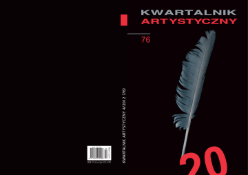 INDEKS 36294 CENA 1 1 zł (w tym 5% VAT) KWARTALNIK AR TYSTYCZNY 4/2012 (76) 76 ZESPÓŁ: Adam Bednarek, Jan Błoński , Stefan Chwin, Aleksander Fiut, Michał Głowiński, Marek Kędzierski, Julian Kornhauser, Leszek Szaruga REDAKCJA: Krzysztof Myszkowski – redaktor naczelny Paweł Tański – sekretarz redakcji Barbara Dąbrowa – biuro redakcji ABSE ACHMATOWA ADAMIEC ADCOCK AJVAZ ALOCHIN ALTIEV AMICHAJ ANCET ANDERMAN ANDRZEJEWSKI ANTONIUK APOLLINAIRE APPEL ARP ASMUS ASPENSTRÖM ATWOOD AUSLÄNDER AUSTER AWIDAN BACHMANN BACON BACZAK BADZIĄG BAGIŃSKI BAJSIĆ BAKEVSKI BALANTIC BALCERZAN BALIŃSKI BANACH BANVILLE BARAN BARANOWSKA BAREŁKOWSKA BARRAL BARTCZAK BARTOSZEWSKI BATHELIER BECKETT BEDNARCZYK BE’ER BELMONT BENKA BENN BERLIN BERNACKI BERNADAC BERNHARD BESANÇON BESZCZYŃSKA BEYER BIAŁOSZEWSKI BIELSKA-KRAWCZYK BIEŃKOWSKA BIEŃKOWSKI BIGA BLIN BLOOM BŁASIAK BŁOŃSKI BOBKOWSKI BOCHEŃSKI BOCZKOWSKI BOLECKA BOLECKI BOLEWSKI BORGES BORKOWSKA BOROWIEC BORUŃ BOURGEOIS BRAKONIECKI BRAUN BRAUTIGAN BRAY BRECHT BRKA BRODA BRODSKI BRONIEWSKI BROWN BRUNNE BRZOSKA BUKOWSKI BUNIN BUREK BURIAN BURYŁA BUSZA CALDER CELAN CELINE CENDRARS CHALFI CHETWYND CHEVILLARD CHLEBNIKOW CHOJNOWSKI CHOLIN CHWIN CIELECKI CIELESZ CIESIELSKA CISŁO CLAUDEL CLUCHEY CRONIN CUMMINGS CVETKOVSKI CYRANOWICZ CZARKOWSKI CZAYKOWSKI CZĘSTOCHOWSKI CZUCHNOWSKI CZUKU ĆWIKLIŃSKI ČEGEC DANILEWICZ-ZIELIŃSKA DANN DĄBROWSKA DĄBROWSKI DEHNEL DELEUZE DERDOWSKI DEVILLE DĘBICZ DICKINSON DŁUSKI DOBIES DOMARUS DOOLITTLE DORN DRAWERT DRIVER DUBOWIK DUKES DUNIN DUPIN DURAKOWIĆ DURAS DYAKOWSKI DZIEŃ DZIURZYŃSKI ECHENOZ T.S.ELIOT ENGELKING ENRIGHT ENZENSBERGER ESSLIN FABJAN FALARSKI FERENC FERRINI FIETT FILIPIAK FIUT FLAUBERT FLEISCHMANN FLETCHER FRAJLICH FRANASZEK FRANIA FRÉNAUD FRIEDELÓWNA FUCHS FRYDRYCZAK GAILLY GALAS GARDZIELWSKA GARLICKA GASPAROW GENET GEORGIEW GIACOMETTI GIDLECKA GIEDROYC GILBOA GINSBERG GIERSZEWSKI GIZELLA GLONDYS GŁOWIŃSKI GOERKE GOMORI GORCZYŃSKA GRABOWSKI GROSSMAN GRUCHAŁA GRUDZIŃSKA GRUNBEIN GRZEBALSKI GRZEGORZEWSKA GRZESIAK GRUSE GRYKO GRYNBERG GURI GUTOROW GUTOWSKI HALAS HAMKAŁO HANDKE HARRIS HARTWIG HASS HASSEK HAVEL HEDLUND HELLIKES HERBERT HERLING-GRUDZIŃSKI HERTZ HETMAN HIEBEL HOFFMAN HOFFMANN HOLUB HONET HÖLDERLIN HRYNACZ HUNKELER HUNTER IONESCO ISSA IWANIUK JACCOTTET JAKUBOWSKA-FIJAŁKOWSKA JANKOWSKI JANKO JAN PAWEŁ II JARNIEWICZ JARZĘBSKI JASEK JASPERS JASTRUN JASTRZĘBIEC-MOSAKOWSKI JELINEK JEDLIŃSKI JELLOUN JENTYS JONATAN JOYCE JUARROZ JULIET A. JUREWICZ J. JUREWICZ JURKOWSKA JURZYSTA KAJAK KAKAREKO KALANDYK KALB KALISZER-HAZAZ KALINOWSKI KALOTA-SZYMAŃSKA KANTOR KAPUŚCIŃSKI KARASEK KAROLAK KASTEL-BLUM KAWAFIS KĘDZIERSKI KIBIROW KIELAR KIEPUSZEWSKI KIERC KIJOWSKI KISEVIC KITSCH KIZNY KLEJNOCKI KLOTT KŁOCZOWSKI J.A. KOBIERSKI R. KOBIERSKI KOHLER KOLBE KOLTES KOŁACKA KONWICKI KOVILOVSKI JULIAN KORNHAUSER JAKUB KORNHAUSER KORZENIOWSKI KOSIŃSKA KOŚCIAŁKOWSKA KOTAŃSKI KOTLARCZYK KOZIOŁ KOŹMIŃSKI KRAL KRASIŃSKI KRAUSS KREMER KRÓL KRYNICKI KRYSZAK KRZYŻAN KUBIAK KUCIAK KURAŚ KUREK KURYLAK KURYLUK KUŚ KUŹMIŃSKI KÜSTER KWIATKOWSKI LALIĆ LASECKI LASKER-SCHÜLER LATAWIEC LE CLÉZIO LEFCOWITZ LEKSZYCKI LEM LEMPP LENOIR LEOCIAK LESZKOWICZ LEWANDOWSKI LEVERTOV LEVINE LIBERA LIGĘZA LINDON LIPKA LIPSKA LIPSKI LIRA-ŚLIWA LISOWSKI LORD LOVELL LUBIŃSKA LUDWIKOWSKA LUKIĆ LUPA ŁUKASIEWICZ ŁUKASZEWICZ MACCAIG MACIERZYŃSKI MACKIEWICZ MADEJSKI MAJ MAJERSKI MAKOVI MALISZEWSKI MARCZEWSKI MAGEN MARCZEWSKI MARJAŃSKA MASIANIS MASOŃ MATUSZEWSKI MATYWIECKI MAUVIGNIER MACCAIG MCMULLAN MELBECHOWSKA-LUTY MELECKI MENASSE MESCHONNIC MICHAŁ ANIOŁ MICHAŁOWSKI MIELHORSKI MIESZKO MIĘDZYRZECKI MIKOŁAJCZAK MIKOŁAJEWSKI MIŁOSŁAWSKI MIŁOSZ MISIAK MITTERMAYER MITZNER MIZERKIEWICZ MLADENOSKI MOCARSKA-TYCOWA MOCZKODAN MOCZULSKI MORAWIEC MOŚCICKI MOYER MÜLLER-FREIENFELS MUSIAŁ MUSZYŃSKI MYSZKOWSKI NAPIÓRKOWSKI NASIŁOWSKA NDIAYE NIEMIEC NIXON NOWACKI NOWAKOWSKA NOWICKI NOWOSIELSKI OLEK OLĘDZKA-FRYBESOWA ONDAATJE OPALIŃSKA ORDAN ORŁOŚ ORSKI OSTER OSTI OSZAJCA ÖZKÖK PACHOCKI PACHOLSKI PANCZENKO PANKOWSKI PAWLUŚ PAWŁOWSKA PAŹNIEWSKI PENDERECKI PETRESKI PIASZCZYŃSKI PIECHOCKA PIECHOWICZ PIECZYŃSKI PIETRYK PILCH PINGET PINTER PINTILIE PIRIE PIWKOWSKA PJECUCH PLATH PLUTOWICZ POLKOWSKI POLLAKÓWNA POMORSKI POTOKAR POUND PRAŻMO PROCKI PRUSS PRZYBYLAK PRZYBYSŁAWSKI PUCIATA QUADFLIEG RABINOVICI RADZIEJOWSKI RAWIKOWICZ RENOUARD REŠICKI REUBNER REVERDY REXROTH RIEGEL RIEGER ROBBE-GRILLET ROBERTS RODOWSKA ROGUSKI ROMANOW ROSENTHAL ROSSET ROTH ROTHMANN ROUAUD J. RÓŻEWICZ ST. RÓŻEWICZ T. RÓŻEWICZ RÓŻYCKI RUBINSTEIN RUTKOWSKI J.M.RYMKIEWICZ RZĘDZIAN SACHS SADECKI SALAMUN SALMONOWICZ SALSKA SARAJLIĆ SARNA SARRAUTE SARTRE SCHILLER SCHEIDEGGER SCHNEIDER SCHUBERT SEIFERT SEJFAS SENKTAS SEXTON SHLIEN SIEGEL SIEMASZKO SIENKIEWICZ SIMIĆ SIMON SINGER SIWCZYK SIWIEC SKRENDO SKUCZYŃSKI SKWARNICKI SŁAWIŃSKA SŁAWNIKOWSKI SMALCERZ SMOLKA SNYDER SOBKOWIAK SOBOLCZYK SOBOLEWSKI SOCHOŃ SOKOŁOWSKI SOLIŃSKI SOMMER SONNENBERG STACHURA STANIŁKO STANKOWSKA STARCZAK-KOZŁOWSKA STASIUK STAŚKIEWICZ STEFKO STERN STERNA-WACHOWIAK STOJIĆ STREERUWITZ STROIŃSKI STRUMIŁŁO-MIŁOSZ STRUMYK STYCZEŃ SULEJMAN SUSLIN SYLVESTER SYNDER SYNORADZKA SZAFRANIEC SZARMACH SZARUGA J.J.SZCZEPAŃSKI SZEWC SZKŁOWSKI SZLOSAREK SZUBA SZUBER SZWALBE A. SZYMAŃSKA B. SZYMAŃSKA I. SZYMAŃSKA SZYMANOWSKI SZYMBORSKA ŚMIEJA TABORSKI TAŃSKI TERC THOMAS TISCHNER TKACZYSZYN-DYCKI TOCINOVSKI TOMASIK TOUSSAINT TRAKL TRIECHEL TRZECIAKOWSKI TUNNER TUSZYŃSKA TWARDOWSKI TYRANKIEWICZ VARGA VIEL VODUSEK WAJDA WALC WALSER WANIEK WANTUCH WARTA WEBER WELTER WENCEL WENDORFF WHIETELAW WHITMAN WIECZOREK WILDE WILLIAMS WINIARSKI WIRPSZA WIŚNIEWSKI WITKOWSKI WOHN WOJCIECHOWSKA WOJCIECHOWSKI WOLSKI WOŁOSZYN WOROSZYLSKI WÓJCIK WRÓBLEWSKI K. WYKA M. WYKA WYCZÓŁKOWSKA YEATS ZACH ZADURA ZAGAJEWSKI ZAJC ZAMIARA ZARĘBIANKA ZAWADA ZAWISTOWSKI ZEGARLIŃSKI ZETTINGER ZIELENKIEWICZ ZIEMIŃSKI ŻAKIEWICZ ŻYŁKO ŽAGAR 4 /201