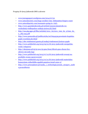 Przypisy Dr Jerzy Jaśkowski GMO a zdrowie • www.jonrappoport