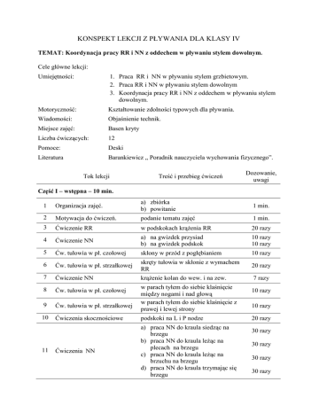 KONSPEKT LEKCJI Z PŁYWANIA DLA KLASY IV