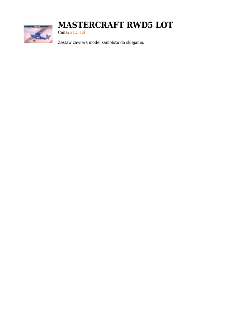 MASTERCRAFT RWD5 LOT Cena: 21.53 zł Zestaw zawiera model samolotu do sklejania.