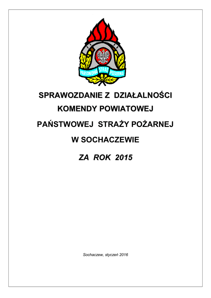 SPRAWOZDANIE Z DZIAŁALNOŚCI KOMENDY POWIATOWEJ PAŃSTWOWEJ STRAŻY POŻARNEJ W SOCHACZEWIE ZA ROK 2015 Sochaczew, styczeń 2016 1. Działania ratownicze prowadzone przez jednostki ochrony przeciwpożarowej w 2015 roku. W 2015 roku zanotowano na terenie powiatu sochaczewskiego ogółem 1522 zdarzenia, z tego 543 wystąpiło na terenie miasta Sochaczew. Porównując ogólną liczbę zdarzeń należy stwierdzić, że jest ona większa o ponad 18% w porównaniu do 2014 roku. Wówczas na terenie powiatu odnotowano ogółem 1285 interwencji, z czego 524 na terenie miasta Sochaczew. Na ogólną liczbę 1522 zdarzeń składa się: 691 pożarów, (wzrost o 224, tj. 48%), 684 miejscowe zagrożenia, (spadek o 15, tj. 2%), 147 alarmów fałszywych (wzrost o 28, tj. 24% ). Przy liczbie zdarzeń 1522, w 2015 roku średnio co niespełna 6 godzin, czyli 4 razy dziennie do Stanowiska Kierowania Komendanta Powiatowego Państwowej Straży Pożarnej w Sochaczewie wpływało zgłoszenie z prośbą o pomoc. Analizując strukturę zdarzeń otrzymano: Tab. Nr 1 Liczba poszczególnych zdarzeń w 2015 roku Zdarzenie Rodzaj Ilość Pożary RAZEM 691 małe 640 średnie 49 duże 2 bardzo duże 0 Miejsca powstania pożarów: Pożary Miejscowe zagrożenie obiekty użyteczności publicznej 10 obiekty mieszkalne 75 obiekty produkcyjne 16 obiekty magazynowe 6 środki transportu 19 lasy 72 uprawy 122 inne 271 RAZEM 684 małe 86 lokalne 590 średnie 7 duże 1 klęska 0 Rodzaje miejscowych zagrożeń: Miejscowe zagrożenie silne wiatry 145 przybory wód 1 opady śniegu 0 opady deszczu 1 chemiczne 11 ekologiczne 1 radiologiczne 0 budowlane 3 infrastruktury komunalnej 3 Analiza działalności KP PSP Sochaczew za 2015 2 w komunikacji drogowej 149 w komunikacji kolejowej 0 w komunikacji lotniczej 1 na obszarach wodnych 7 medyczne 61 Miejsca powstania miejscowych zagrożeń: Miejscowe zagrożenie Alarmy fałszywe obiekty użyteczności publicznej 20 obiekty mieszkalne 178 obiekty produkcyjne 3 obiekty magazynowe 1 środki transportu 142 lasy 2 uprawy 20 inne 318 RAZEM 147 złośliwe 8 w dobrej wierze 49 z instalacji wykrywania 90 OGÓŁEM ZDARZEŃ 1522 Tab. 2 Liczba zdarzeń na terenie działania Komendy Powiatowej PSP w Sochaczewie w 2015 roku Miejscowe zagrożenia Pożary LP. Powiat / gmina Razem małe średnie Razem Alarmy fałszywe małe lokalne średnie Razem OGÓŁEM ZDARZEŃ W dobrej Z instalacji Ogółem Złośliwe wierze wykr. zdarzeń 8 49 90 1522 1 sochaczewski 691 640 49 684 86 590 7 147 2 Brochów 102 95 6 58 8 46 4 4 0 4 0 164 3 Iłów 62 55 6 50 6 44 0 5 0 5 0 117 4 Młodzieszyn 68 53 15 54 2 51 0 4 0 4 0 126 5 Nowa Sucha 32 30 2 34 4 30 0 8 1 4 3 74 6 Rybno 15 14 1 25 1 23 1 2 0 2 0 42 7 m. Sochaczew 224 214 10 278 58 219 1 41 2 16 23 543 8 Sochaczew 104 99 5 101 2 99 0 33 0 5 28 238 9 Teresin 84 80 4 84 5 78 1 50 5 9 36 218 W 2015 roku podejmowano również interwencje w związku z dwoma dużymi pożarami: - pożar stodoły z oborą w dniu 22 sierpnia w miejscowości Gilówka Górna, gm. Iłów, - pożar trzcinowiska w dniu 11 października w miejscowości Famułki Brochowskie, gm. Brochów, oraz jednym dużym miejscowym zagrożeniem: - przewrócona cysterna na rondzie w miejscowości Janów, gm. Młodzieszyn. We wszystkich interwencjach w 2015 roku brało udział łącznie 2289 samochodów pożarniczych i 8960 strażaków (bez uwzględnienia wyjazdów do alarmów fałszywych). Mieszkańcy powiatu sochaczewskiego oraz osoby spoza powiatu, u których zdarzenia miały miejsce ponieśli szacunkowe straty w wysokości 5 mln 86 tys. zł, przy czym straty w wyniku pożarów wyniosły 3 mln 180 tys. zł, natomiast szacunkowa wartość uratowanego mienia w wyniku prowadzonych działań ratowniczych to 12 mln 94 tys. zł. Analiza działalności KP PSP Sochaczew za 2015 3 Tab. Nr 3 Szacunkowe straty w pożarach w 2015 roku (w tys. zł) Powiat/Gmina Liczba pożarów Straty ogólne Powiat 691 3 180 Wartość W tym straty uratowanego budynkowe mienia 1 339 11 677 Brochów 102 657 162 1 131 Iłów 62 660 380 1 670 Młodzieszyn 68 255 106 665 Nowa Sucha 32 121 38 160 Rybno 15 65 30 290 Sochaczew 104 510 401 2 380 Teresin 84 370 180 627 m. Sochaczew 224 542 42 4 754 Średnie straty podczas statystycznego pożaru – 4 600 zł Średnie straty podczas statystycznego miejscowego zagrożenia – 2 790 zł We wszystkich akcjach ratowniczych prowadzonych przez JRG PSP Sochaczew i jednostki OSP odnotowano 9 ofiar śmiertelnych (w 2014 roku – 22) oraz 159 osób rannych (w 2014 roku – 145). Głównie ofiary śmiertelne wystąpiły wskutek wypadków drogowych. Nie odnotowano ofiar śmiertelnych w wyniku pożarów. W wyniku pożarów poszkodowanych zostało 12 osób (w 2014 roku – 9), w tym jeden strażak jednostki OSP, który zasłabł podczas gaszenia pożaru lasu. Wykres Nr 1. Zdarzenia w powicie sochaczewskim w latach 2011 – 2015 1600 147 76 49 77 792 1200 684 647 855 699 691 720 537 119 351 1400 465 1000 800 Alarmy fałszywe 600 Miejscowe Zagrożenia 400 Pożary 200 0 2014 2015 2011 2012 2013 rok rok rok rok rok Analiza działalności KP PSP Sochaczew za 2015 4 Tab. 4 i 5 Udział poszczególnych jednostek w działaniach ratowniczo-gaśniczych w 2015 roku. Analiza działalności KP PSP Sochaczew za 2015 6 Tab. 6 Najczęstsze, przypuszczalne przyczyny powstawania pożarów Przyczyna pożaru Nieustalone ilość 462 Podpalenia (umyślne) w tym akty terroru 77 Nieostrożność osób dorosłych przy posługiwaniu się ogniem otwartym, w tym papierosy, zapałki 26 Nieostrożność osób dorosłych (NOD) przy wypalaniu pozostałości roślinnych na polach 24 Inne przyczyny 17 Wady urządzeń i instalacji elektrycznych (przewody, osprzęt oświetlenia, odbiorniki bez urządzeń ogrzewczych) 16 Nieprawidłowa eksploatacja urządzeń ogrzewczych na paliwo stałe 13 Wady urządzeń ogrzewczych na paliwo stałe 9 Wady środków transportu 6 Nieostrożność osób nieletnich przy posługiwaniu się ogniem 5 Wyładowania atmosferyczne Raz