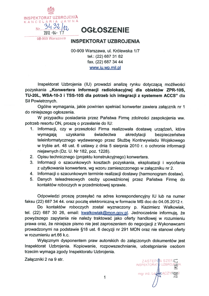 ogłoszenie - Inspektorat Uzbrojenia