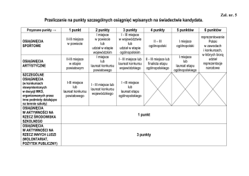 Przeliczanie na punkty szczególnych osiągnięć wpisanych na
