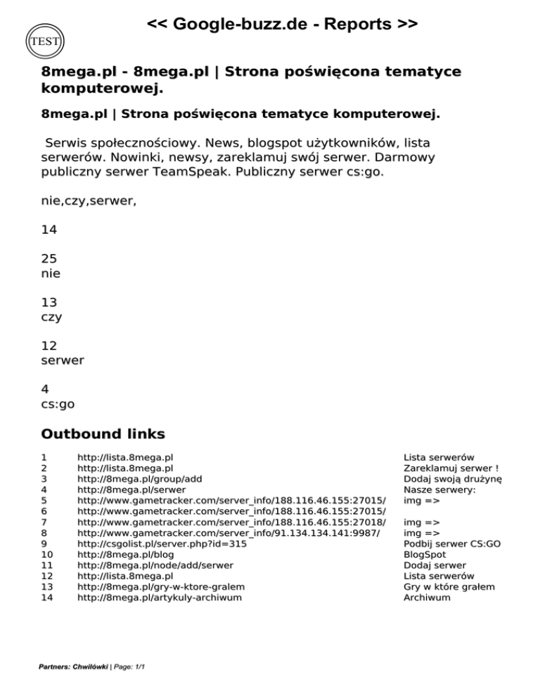 << Google-buzz.de - Reports >> 8mega.pl - 8mega.pl | Strona poświęcona tematyce komputerowej. 8mega.pl | Strona poświęcona tematyce komputerowej. Serwis społecznościowy. News, blogspot użytkowników, lista serwerów. Nowinki, newsy, zareklamuj swój serwer. Darmowy publiczny serwer TeamSpeak. Publiczny serwer cs:go. nie,czy,serwer, 14 25 nie 13 czy 12 serwer 4 cs:go Outbound links 1 2 3 4 5 6 7 8 9 10 11 12 13 14 http://lista.8mega.pl http://lista.8mega.pl http://8mega.pl/group/add http://8mega.pl/serwer http://www.gametracker.com/server_info/188.116.46.155:27015/ http://www.gametracker.com/server_info/188.116.46.155:27015/ http://www.gametracker.com/server_info/188.116.46.155:27018/ http://www.gametracker.com/server_info/91.134.134.141:9987/ http://csgolist.pl/server.php?id=315 http://8mega.pl/blog http://8mega.pl/node/add/serwer http://lista.8mega.pl http://8mega.pl/gry-w-ktore-gralem http://8mega.pl/artykuly-archiwum Partners: Chwilówki | Page: 1/1 Powered by TCPDF (www.tcpdf.org) Powered by TCPDF (www.tcpdf.org) Lista serwerów Zareklamuj serwer ! Dodaj swoją drużynę Nasze serwery: img => img => img => Podbij serwer CS:GO BlogSpot Dodaj serwer Lista serwerów Gry w które grałem Archiwum