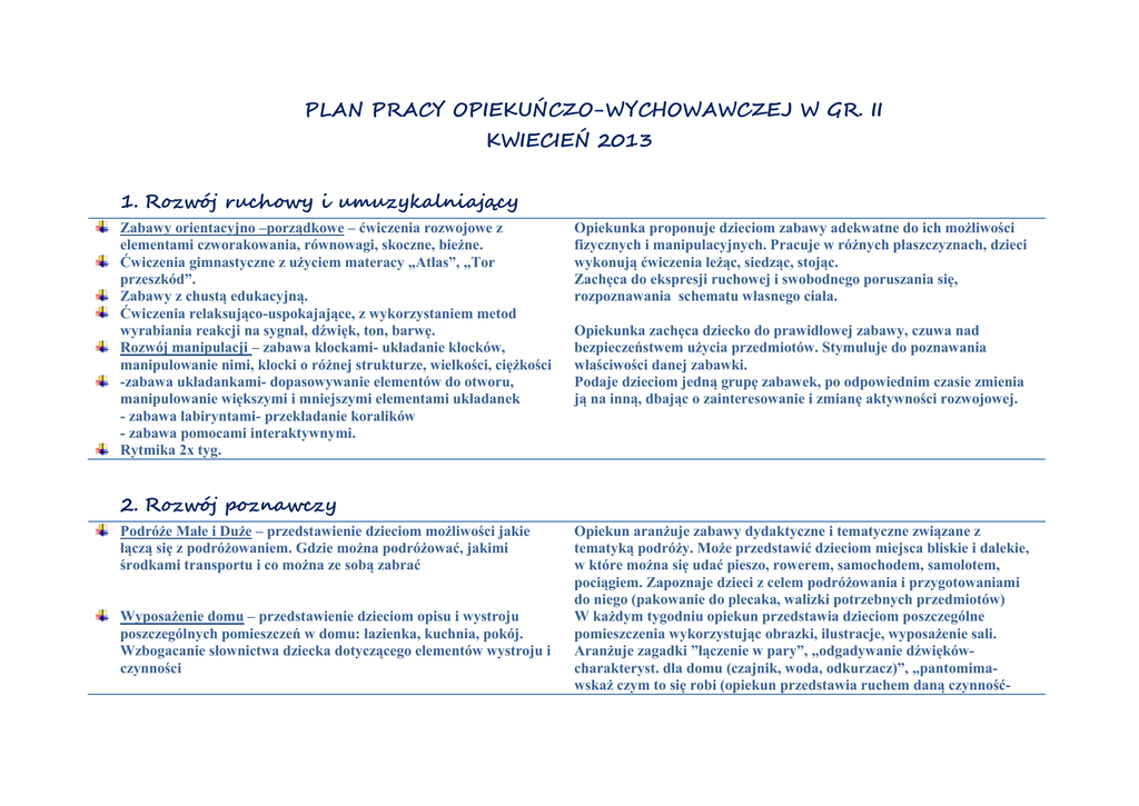 plan pracy grupa ii kwiecień 2013
