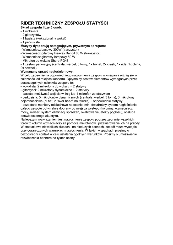 Rider techniczny zespołu Statyści