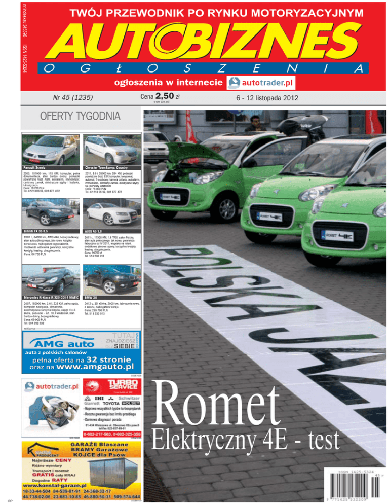 Nr 45 (1235) Cena 2,50 zł w tym 23% VAT 6 - 12 listopada 2012 OFERTY TYGODNIA 10167638 32178647 RP 10223296 10168410 Romet Elektryczny 4E - test str. 2 AKTU AK TUALN ALNOŚCI OŚCI 6 – 12 list listopada opada 2012 r. Porsche Spis treści Cayenne Diesel od Kahna Ogłoszenia motoryzacyjne Kahn Design to firma, która tuninguje auta wszelakiej maści, ale szczególnie lubuje się w poprawianiu i upiększaniu SUV-ów. Jej najnowszym dziełem jest ekstremalne wcielenie wysokoprężnego Porsche Cayenne PORSCHE Samochody InfoBiznes osobowe................................6 Dla koneserów terenowe, vany....................19 motocykle............................19 Autotruck autobusy .............................20 ciężarowe ...........................20 dostawcze ...........................20 przyczepy ............................21 Części i akcesoria ............22 Maszyny i urządzenia Kahna zaliczyć można do tunerów raczej... ekspresyjnych. Oprócz wielkich kół samochody z reguły ozdabiane są dość śmiałymi pakietami aerodynamicznymi. Nie inaczej jest i w tym przypadku. Nazwa Porsche Supersport Widetrack mówi sama za siebie. I chociaż trzylitrowe V6 inżynierowie postano- Trudno nie zauważyć też potężnych wili zostawić w spokoju, z zewnątrz 22-calowych obręczy kół, a efektu doauto prezentuje się dużo groźniej niż pełniają mocno przyciemnione szyby, fabryczna wersja modelu. A wszyst- czarne klamki, złote zaciski hamulcoko za sprawą subtelnie zmodyfikowa- we i ozdobne końcówki układu wydenych zderzaków, specjalnie skrojo- chowego. W kabinie niemieckiego nych nakładek poszerzających nad- SUV-a styliści Kahna również zostakola i dużego spojlera nad tylną szybą. wili po sobie ślad. To m.in. fotele ze skórzanym, perforowanym obiciem i dwukolorowymi przeszyciami oraz nowe zegary. Ile trzeba zapłacić za tak przyprawione Porsche Cayenne? W Wielkiej Brytanii, skąd wywodzi się Kahn Design, ceny zaczynają się od 73 875 funtów, czyli ponad 380 tys. zł. Bartosz Sińczuk maszyny i sprzęt rolniczy...22 Bugatti Veyron inne maszyny i urządzenia ........................22 Różne ogłoszenia inne......................................22 Prezes Zarządu: Anna Podkowińska Redakcja: ul. Czerska 8/10, 00-732 Warszawa e-mail: [email protected] Redaktor naczelny: Juliusz Szalek e-mail: [email protected] Redaktor prowadzący: Adam Giesak e-mail: [email protected] tel. 22 555 58 80 Dyrektor sprzedaży: Przemysław Mańkowski e-mail: [email protected] tel. 22 455 33 00 Dyrektor wydawniczy: Agata Rybak, e-mail: [email protected], faks 22 455 33 01 Kierownik marketingu: Agnieszka Budzyńska e-mail: [email protected] OGŁOSZENIA W INTERNECIE zapraszamy na autotrader.pl Wydawca: Trader.com (Polska) sp. z o.o. Druk: AGORA SA, 03-230 Warszawa, ul. Daniszewska 27; Nasze konto: Trader.com (Polska), ul. Czerska 8/10, 00-732 Warszawa Bank Pekao SA nr rachunku: 35 1240 1109 1111 0010 2081 1270 Zamówienia na prenumeratę prosimy kierować do jednostek kolportażowych Ruch SA. Redakcja nie ponosi odpowiedzialności za treść zamieszczanych reklam i ogłoszeń oraz ma prawo odmowy publikacji bez podania przyczyn. Co zrobić, by się nie narobić Bugatti Veyron 16.4 Grand Sport Vitesse Rafale – tak brzmi oryginalna nazwa najnowszej odmiany najszybszego samochodu świata. To już chyba setna z kolei wersja tego auta, w której za zmianę lakieru i kilku drobnostek we wnętrzu trzeba zapłacić krocie. W tym przypadku prawie 700 tys. zł Trudno zliczyć wszystkie edycje specjalne Veyrona. Wymyślenie okazji do stworzenia nowej przychodzi Bugatti tak łatwo jak wymyślanie pretekstu do picia niektórym Polakom. Nieważne jaki motorshow się zbliża – na pewno nie zabraknie na nim „nowego Veyrona”. Tak stało się też przy okazji Salonu Samochodowego wSão Paulo. Przed wami Vitesse Rafale, czyli Bugatti przeznaczone dla najbogatszych Brazylijczyków. Co takiego ma najnowsza odmiana Veyrona, czego nie mają inne jego wersje? Specjalny lakier, felgi, kilka elementów z karbonu pomalowanego na niebiesko iwnętrze, wktórym dominuje ta sama barwa – innymi słowy wszystko to, czego można się spodzie- wać po edycjach specjalnych najszybszego samochodu na świecie i do czego Bugatti już nas przyzwyczaiło. Sercem Vitesse Rafale jest znany, ale wciąż powalający osiągami, silnik W16 o mocy 1200 KM. Rozpędza on Veyrona do setki w 2,6 s i pozwala przekroczyć magiczną barierę 400 km/h (prędkość maksymalna wynosi 410 km/h). Przy opisywaniu jakiejkolwiek edycji Bugatti Veyrona nie sposób nie wspomnieć o cenach. Są one równie kosmiczne jak jego osiągi. Nie inaczej jest tym razem. Za wspomniane zmiany trzeba zapłacić... 160 tys. euro, czyli prawie 700 tys. zł. Drogo, ale kto bogatemu zabroni? Piotr Kozłowski BUGATTI wózki widłowe ....................22 Volkswagen Koniec T2 Produkowany nieprzerwanie od 1967 Volkswagen Transporter T2 w przyszłym roku dokończy żywota. Wykończy go wirus zwany normą bezpieczeństwa Volkswagen zbudował swoją potęgę dzięki niezwykłej popularności Garbusa, jaką cieszył się w latach 50. i 60. Ale to niejedyny model, który sprzedawał się w milionach egzemplarzy. Ogromnym sukcesem był także Transporter T1, który na drogi wyjechał w 1950 roku. Pierwszą poważną modyfikację przeszedł dopiero w 1967 roku, kiedy otrzymał nowe, bardziej komfortowe nadwozie i oznaczenie T2. Po zakończeniu produkcji w Niemczech w 1979 roku nadal wyjeżdżał z fabryk w Ameryce Południowej (Meksyk i Brazylia). Rok temu pisaliśmy, że T2 wraca do Europy. Jego importem z Brazylii zajęła się firma z Holandii. Ten interes nie ma perspektyw. Volkswagen do Brasil podjął już decyzję o zaprzestaniu produkcji. Nastąpi to 31 grudnia 2013 roku. Skąd ta data? 1 stycznia 2014 w Brazylii zaczną obowiązywać nowe normy bezpieczeństwa, których T2 już nie spełnia. Marcin Lewandowski VOLKSWAGEN maszyny budowlane...........22 Chińsk