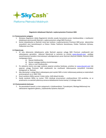 Regulamin doładowao SkyCash z wykorzystaniem Premium SMS