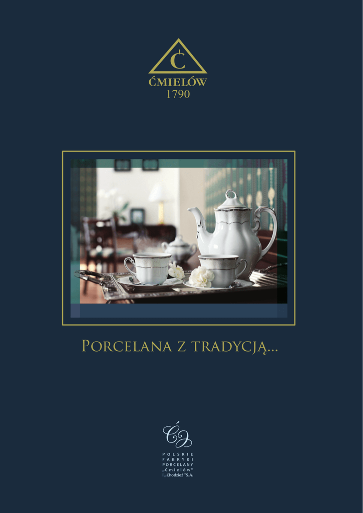 Porcelana z tradycją... Porcelana z tradycją... Logotyp WISTIL GRUPA Logotyp WISTIL GRUPA opiera się o ręcznie kreślony znak „wistil” i jego rozwinięcie poprzez napis „grupa” oparty na foncie Geometric706MdEu firmy Bitsream, który został pochylony i wprowadzono do niego ręczny kerning. Spis treści Contents Classic line Bolero Rococo Lwów Pułaski Feston Vega 4 8 12 16 18 20 Koneser line Empire Kula Płaski Kolekcja jubileuszowa , Klejnot Cmielowa 22 24 25 26 27 Souvenir Rzeźby porcelanowe Bombonierki Filiżanki z monogramem Kolekcja filiżanek Kolekcja kubków Bajkowa Calineczka 28 30 31 32 34 35 Modern line Yvonne Happa Akcent Quebec Eva Minge Home by Ćmielów 36 40 44 48 52 Ćmielów Design Studio line NEW ATELIER 54 Historia History 56 57 Szanowni Państwo, Dear Sir or Madam, Od ponad 223 lat pielęgnujemy najlepsze tradycje wyrobu prawdziwej porcelany. W oparciu o nasz dorobek przygotowaliśmy dla Państwa katalog z kolekcją na sezon 2013-2014, w którym prezentujemy historyczną jakość w innowacyjnej odsłonie. Oferta Polskich Fabryk Porcelany „Ćmielów” i „Chodzież” S.A. to połączenie bogatej historii i niepowtarzalnego designu dwóch najstarszych fabryk porcelany. Obecny kształt firmy jest wynikiem naturalnej konsolidacji wewnątrz grupy kapitałowej, do której doszło 3 czerwca 2013 roku. Historia zatoczyła koło i podobnie, jak przed II Wojną Światową, dwie marki współtworzą pod jednym szyldem, zachowując przy tym swój niepowtarzalny charakter i odrębność. Scaliliśmy porcelanowy dorobek, aby dać Państwu możliwość tworzenia rozbudowanych kolekcji, dopasowanych do indywidualnych potrzeb. Oferta Polskich Fabryk Porcelany to nowa jakość na rynku, poparta bogatą tradycją i historią. Klasyczny i tradycyjny „Ćmielów”, elegancka i funkcjonalna „Chodzież” oraz zupełnie nowy „Ćmielów Design Studio”, wytyczają linię współczesnej porcelany. Marka „Ćmielów” słynie z historycznych kolekcji, które do dziś trafiają na stoły głów państw i monarchów na całym świecie. Wyroby sygnowane tym znakiem powstają w oparciu o najlepsze tradycje szlachetnej porcelany polskiej. Tworzymy unikatowe przedmioty, dbając przy ich wykonaniu o najmniejszy detal i kładąc nacisk na kunszt ręcznego wykonania i zdobienia. Kolekcje „Ćmielowa” to powrót do źródeł poprzez odtwarzanie najstarszych, jedynych w swoim rodzaju, kolekcjonerskich fasonów w nowym ekskluzywnym wydaniu. Prezentowana oferta obejmuje kilkanaście fasonów, podzielonych według serii wzorniczych. Znamienitą linię Classic tworzą kultowe dla wielu pokoleń Polaków serwisy: Rococo, Bolero, Lwów, Pułaski, Feston oraz Vega – wprowadzona ponownie do oferty, po odtworzeniu fasonu pochodzącego z 60-tych lat ubiegłego wieku. Natomiast linia Koneser to prawdziwy rarytas dla miłośników piękna – reprezentują ją ręcznie wykonane i wyjątkowo zdobione, historyczne fasony: Empire, Kula i Płaski. Znane serwisy wykonali, tworzący w okresie międzywojennym, sławni artyści jak Józef Wysocki, Wincenty Potacki czy Bogdan Wendorf. Linie Classic i Koneser są potwierdzeniem nieprzemijających wartości naszych wyrobów, odbiciem ponadczasowego kunsztu i okazałości. Te piękne przedmioty użytkowe podkreślą rangę uroczystych i wyjątkowych chwil celebrowanych przy rodzinnym stole Tym z Państwa, którzy szukają nowych, odważnych projektów i wzorów, dedykujemy linię Modern, kolekcję Evy Minge oraz naszą nowopowstałą markę – „Ćmielów Design Studio”. Tę nową pracownię wzorniczą stworzyliśmy, aby połączyć kilkusetletnią tradycję „Ćmielowa” i „Chodzieży” z nowoczesnym i twórczym podejściem do porcelany. Dyrektorem artystycznym pracowni jest Marek Cecuła, uznany artysta ceramik i projektant, autor wielokrotnie nagradzanych prac. Pod jego okiem powstają nowatorskie prace, wyróżniające się pod względem designu i wnoszące nową jakość do dziedziny polskiego wzornictwa. „Ćmielów Design Studio” wychodzi naprzeciw potrzebom nowego odbiorcy, który szuka rozwiązań na codzienne posiłki - funkcjonalnych form i niebanalnego wzornictwa. Pierwszy zaprojektowany dla „Ćmielów Design Studio” serwis to wpisująca się w ideę mix and match seria New Atelier. Poszczególne elementy zestawu oraz kolory dekoracji można dowolnie ze sobą zestawiać i łączyć, tworząc własne, spersonalizowane zestawy. W przyszłości takich innowacyjnych prac powstanie w „Ćmielów Design Studio” dużo więcej. Oddaję w Państwa ręce niniejszy katalog i zapraszam do świata kruchej porcelany. Mam nadzieję, że na jego kartach odnajdą Państwo piękne przedmioty, dopasowane do indywidualnych potrzeb. A szeroki i różnorodny wachlarz oferty, pozwali wybierać wśród najlepszych przykładów polskiego wzornictwa, które narodziły się przed wiekami, jak i wyrobów o nowoczesnym designie. Niech stanie się on inspiracją do wprowadzenia do swojego domu atmosfery wyjątkowości, elegancji i dobrego smaku… For over 223 years we have been fostering the tradition of making real porcelain. On the basis of our achievements, we have prepared for You a catalogue presenting the 2013-2014 collection in which we demonstrate the historical quality in an innovative form. The offer of the Polish Porcelain Factories “Ćmielów” and “Chodzież” S.A. is a combination of a rich history and unique design of the two oldest porcelain factories. The present shape of the company is the result of a natural consolidation within the capital group which took place on 3rd June 2013. History repeated itself and, just like before World War II, the two brands operate under one signboard at the same time maintaining their unique character and distinction. We have merged the porcelain achievements in order to give You the opportunity to create expanded collections, suitable for individual needs. The offer of the Polish Porce